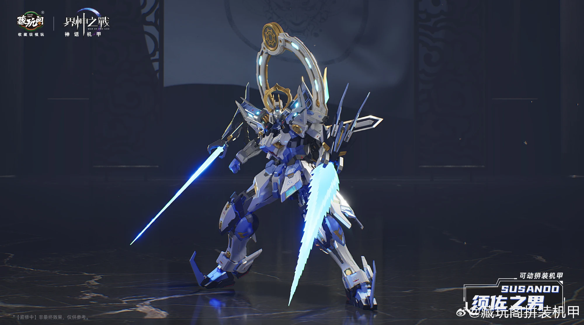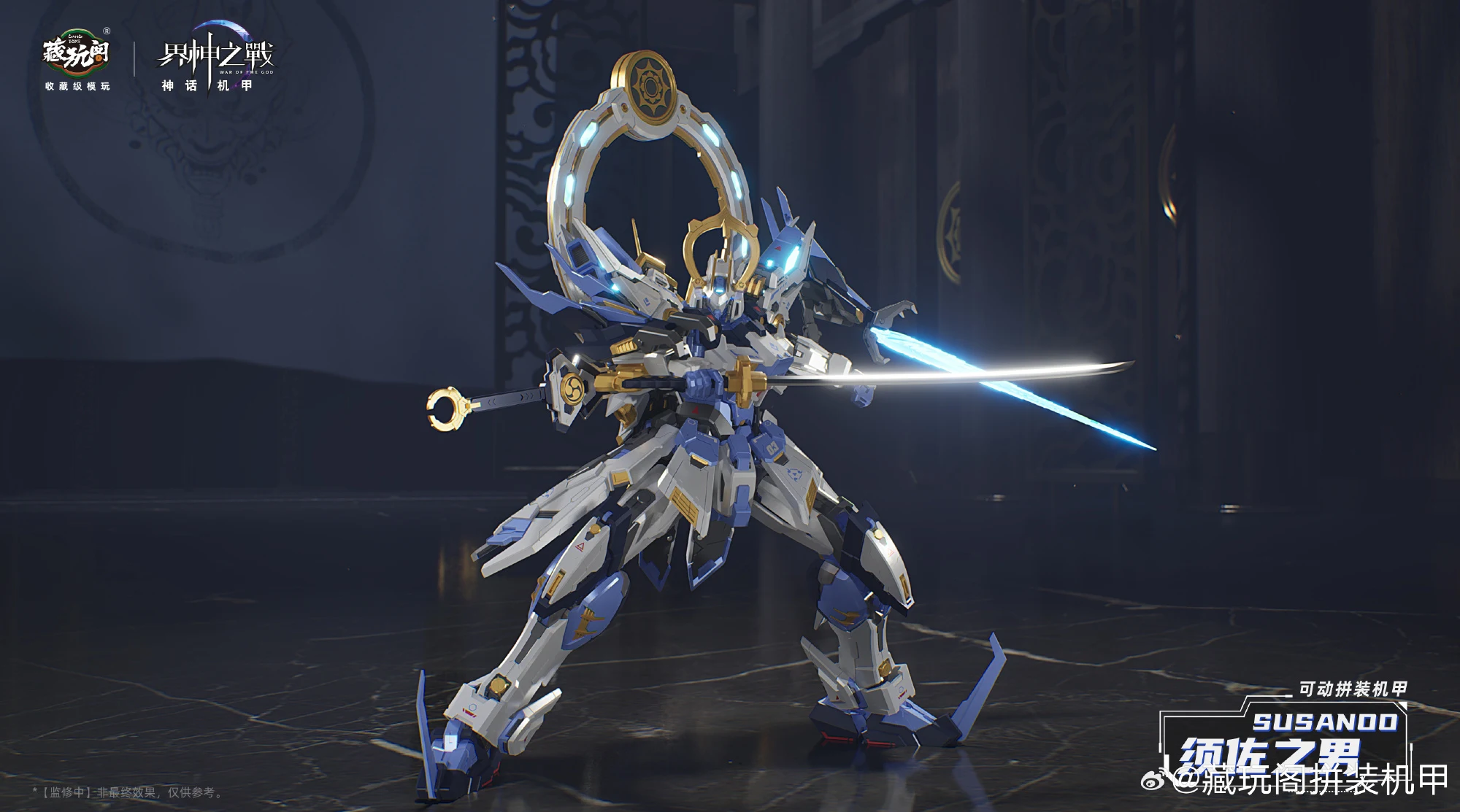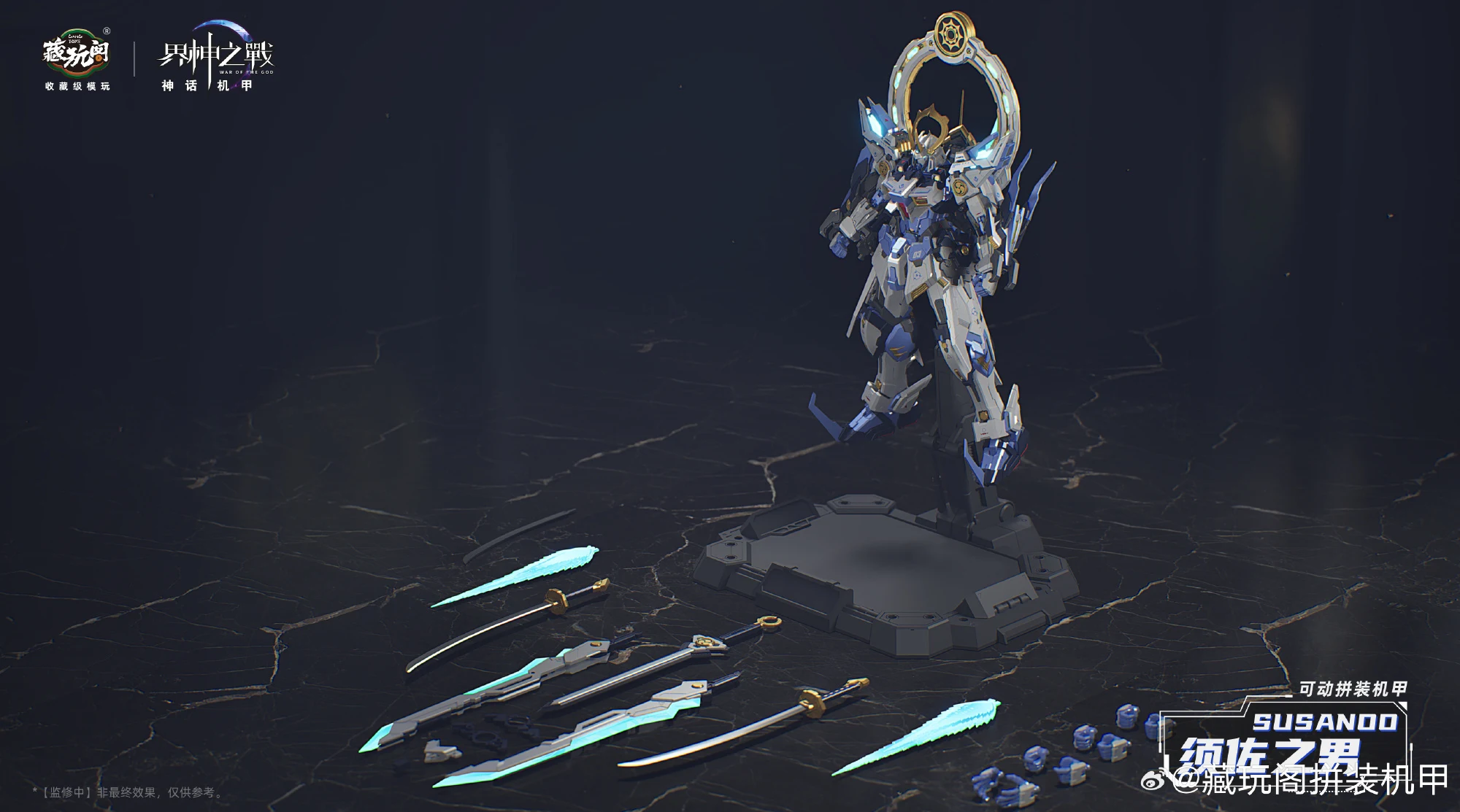 캉토이즈에서 계신지전 IP의 두번째 제품인 스사노오(프라모델)의 CG 컬러 이미지를 공개했습니다. 일본 신화 속 신인 스사노오는 염제의 레드 컬러과 반대로 블루-화이트 컬러가 적용됐네요. 제품은 1/100 프라모델로 크기는 약 20cm이며 2개의 도 ‘팔기참’, 초치검, 십권검, 팔척경 등 다양한 무장 파츠가 눈에 띕니다.