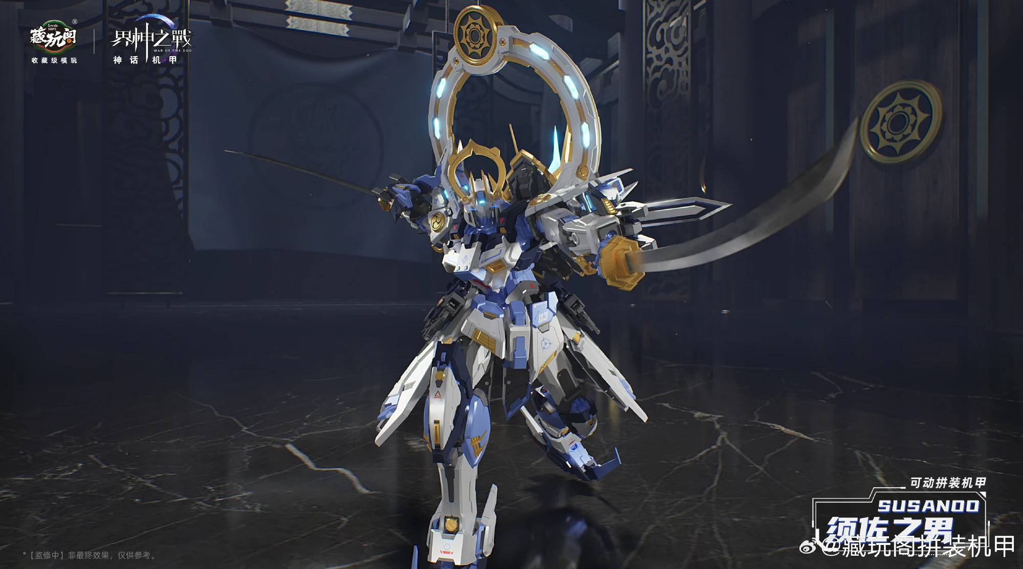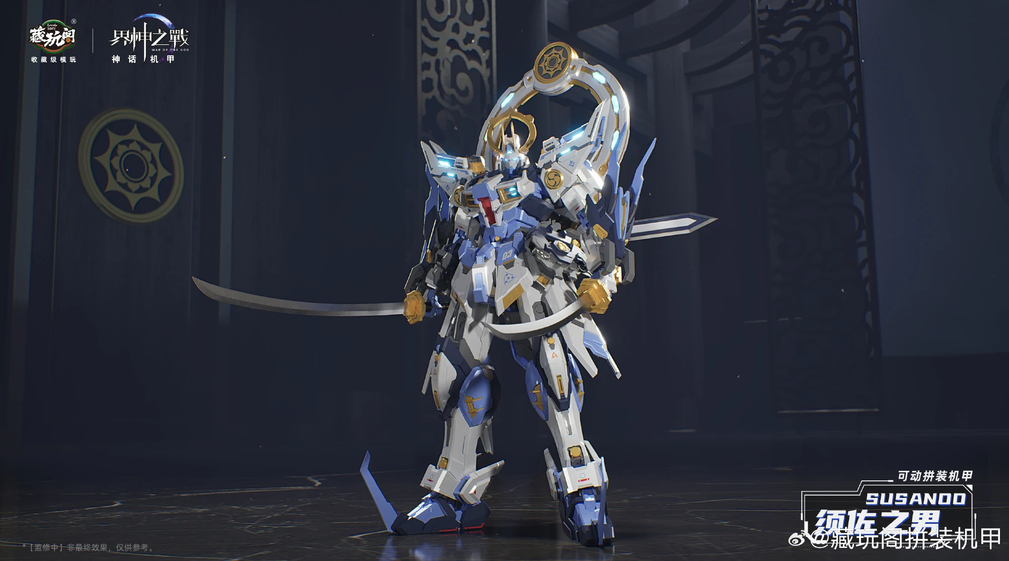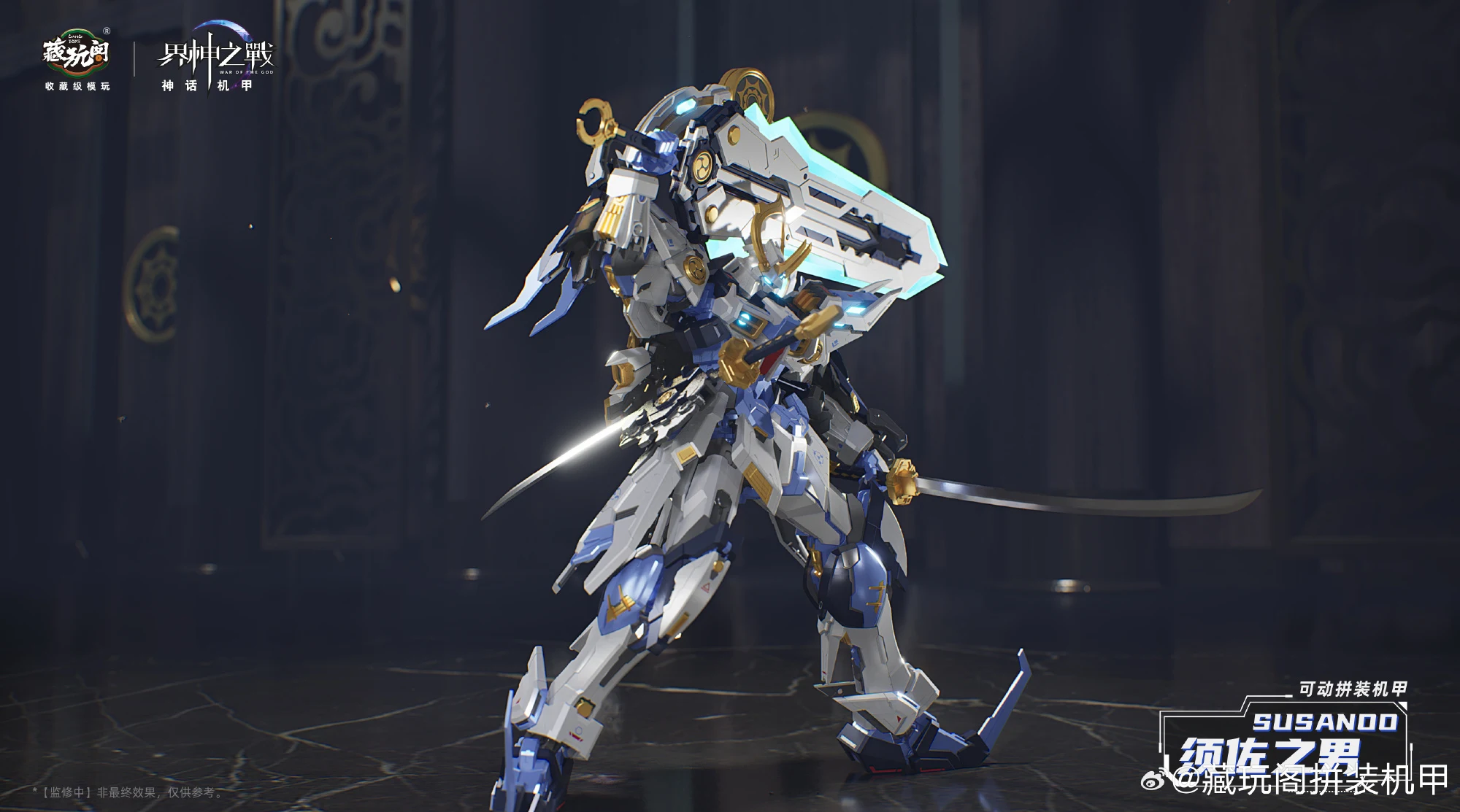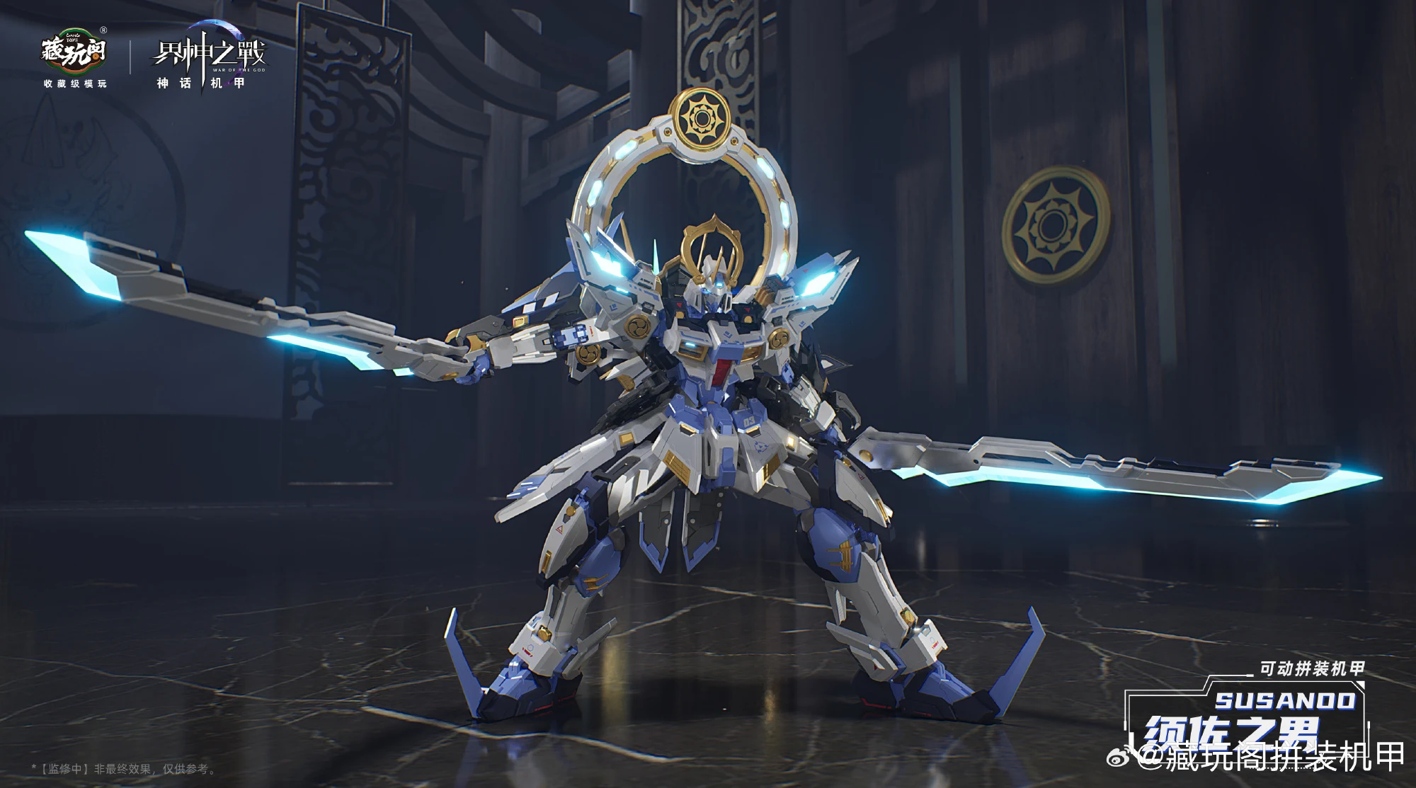 캉토이즈에서 계신지전 IP의 두번째 제품인 스사노오(프라모델)의 CG 컬러 이미지를 공개했습니다. 일본 신화 속 신인 스사노오는 염제의 레드 컬러과 반대로 블루-화이트 컬러가 적용됐네요. 제품은 1/100 프라모델로 크기는 약 20cm이며 2개의 도 ‘팔기참’, 초치검, 십권검, 팔척경 등 다양한 무장 파츠가 눈에 띕니다.