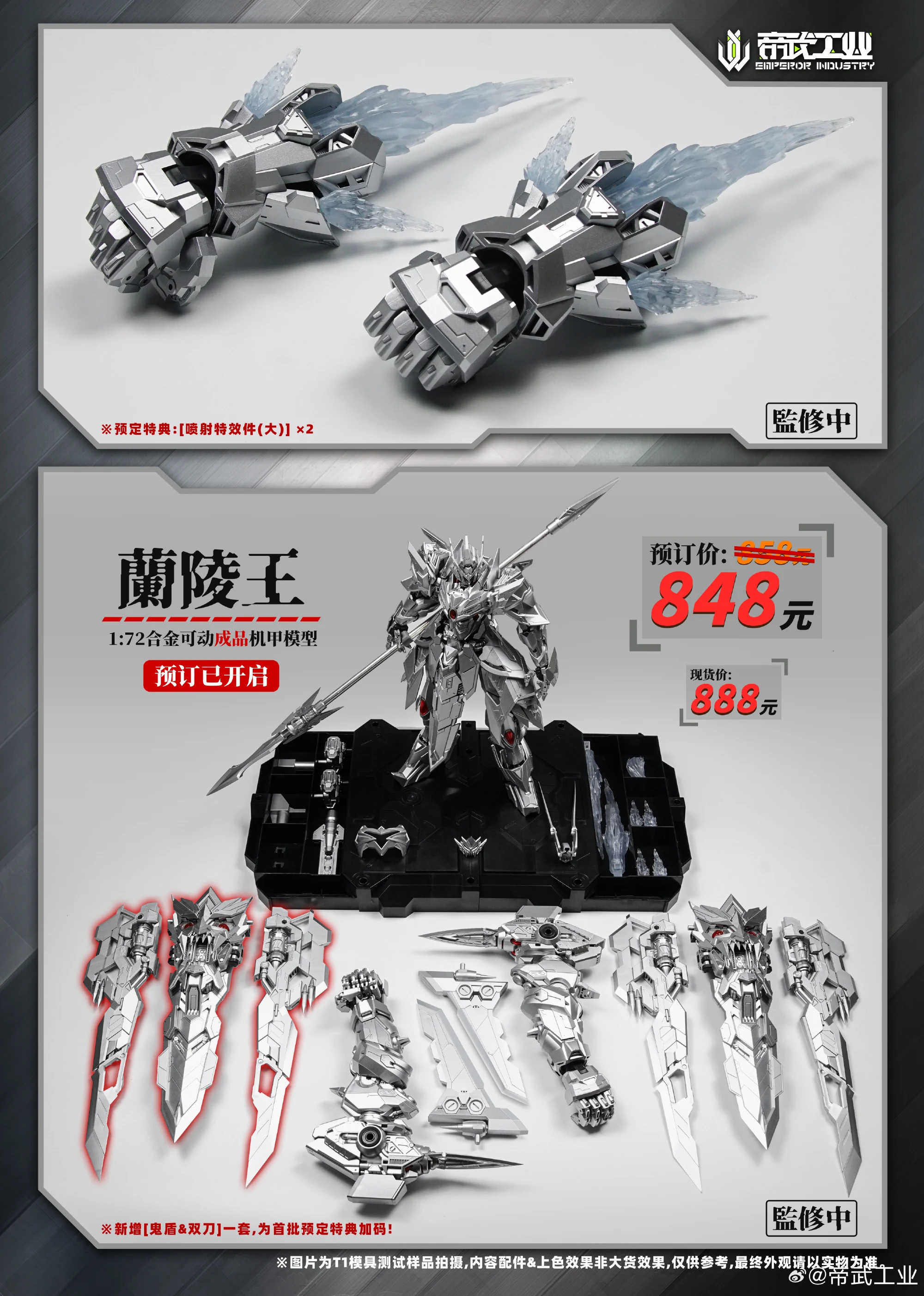 그 외, 업체에서 제품 예약 가격을 기존 858위안에서 848위안으로 10위안 인하했습니다. 출시 후 가격은 888위안이구요. 초회 특전으로 거대 메카닉암 쪽 발사 이펙트 파츠(대형)와 귀면 방패/어썰트 더블 블레이드가 추가 제공된다고 합니다.