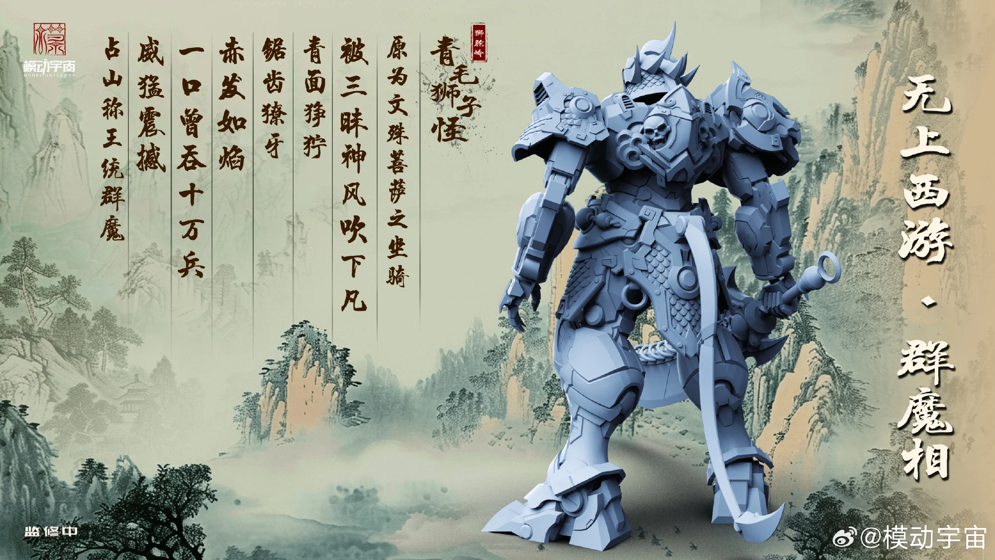 중국 모형업체 모동우주에서 서유기 속 요괴를 테마로 한 라인업과 제품을 선보였습니다. 라인업 명칭은 무상서유-군마상(无上西游-群魔相)이며, 첫 제품은 청모사자괴(青毛狮子怪)라고 하는군요. 제품 종류는 합금완성품입니다.