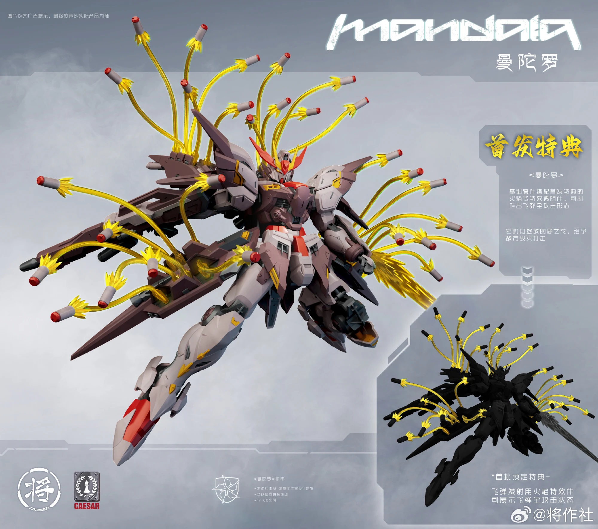 장작사에서 1/100 만다라(프라모델)의 박스 아트 이미지와 근황에 대해 공지했습니다. 우선 박스 아트 이미지는 앞서 공개됐던 이미지에 미사일 발사 모습을 추가한 정도라 크게 볼만한 부분은 없고, 업체 왈 근시일 내에 리뷰용 샘플을 발송할 예정이라고 밝힌 부분이 눈에 띕니다.
