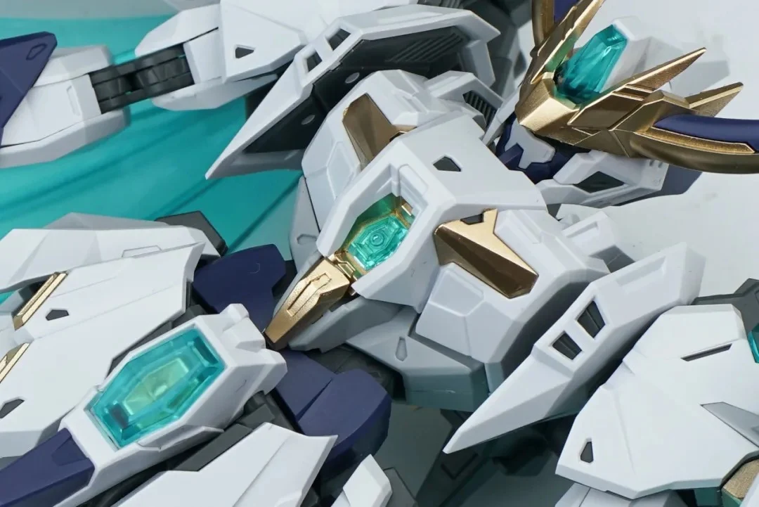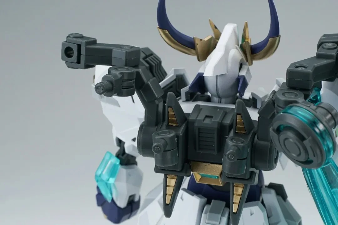 | 1/144임에도 메탈릭 골드에 에메랄드 컬러의 클리어 파츠가 중첩되는 구조를 적용해 꽤나 디테일량이 좋습니다 |