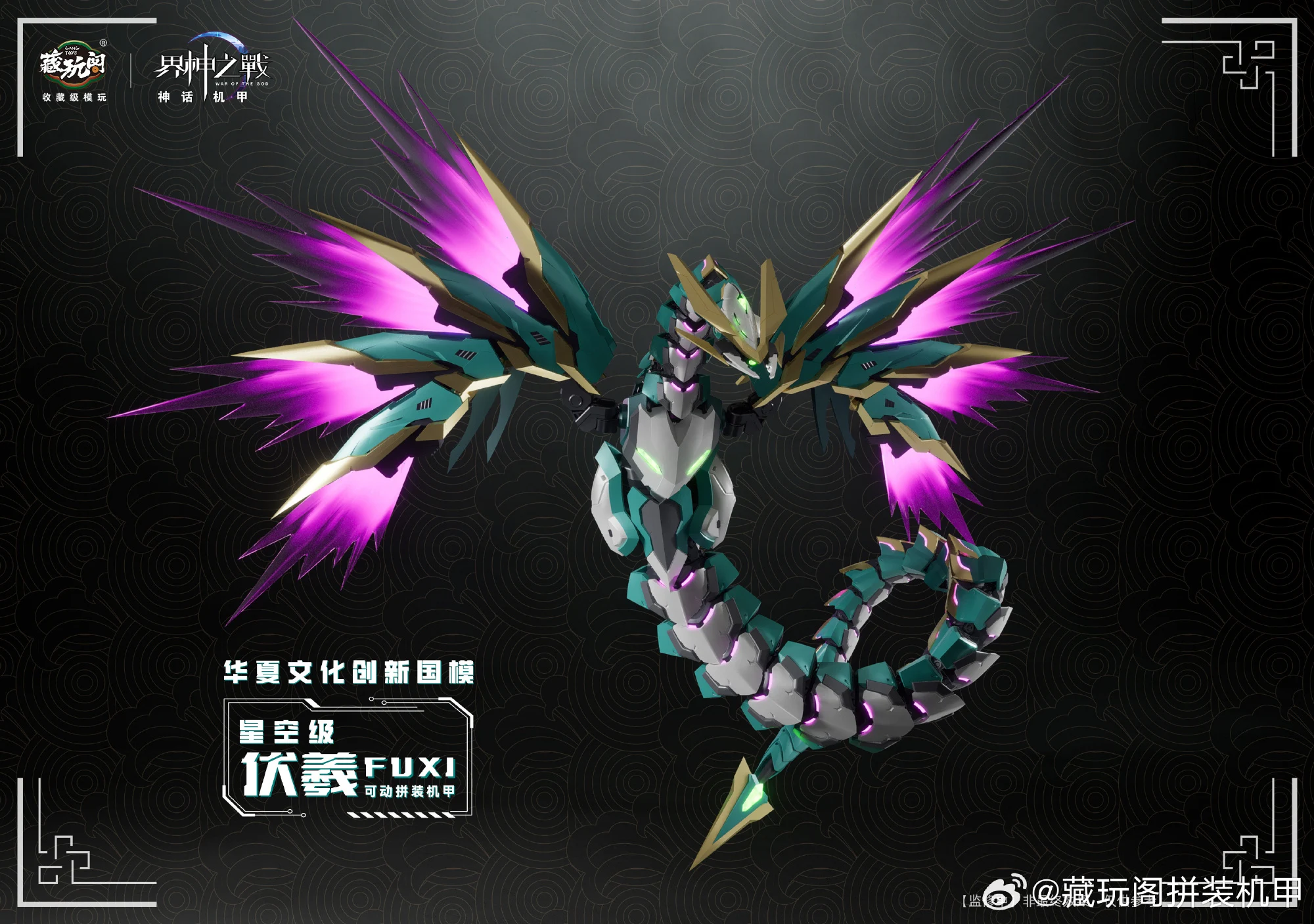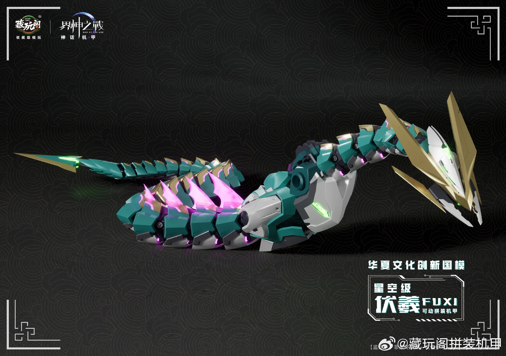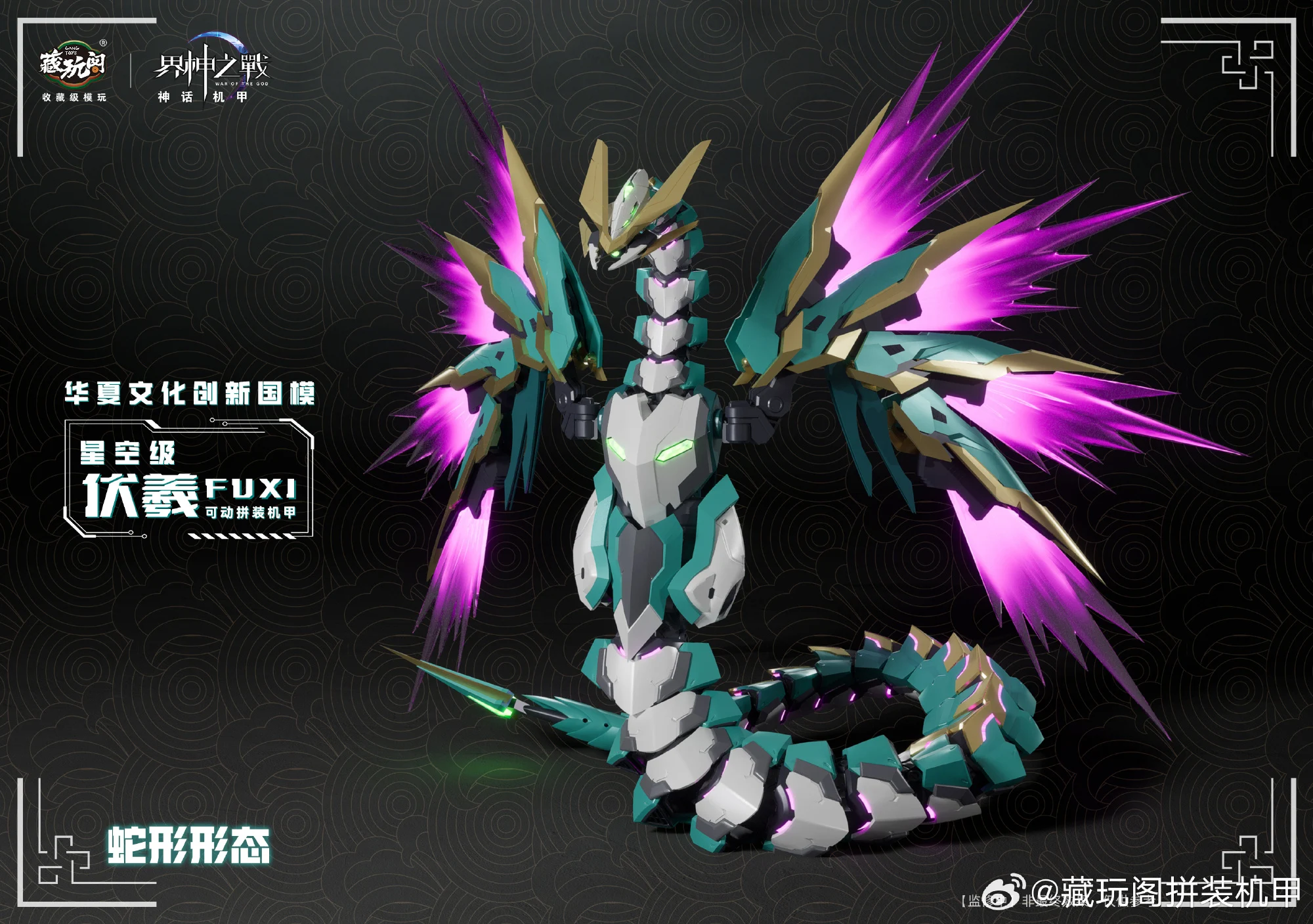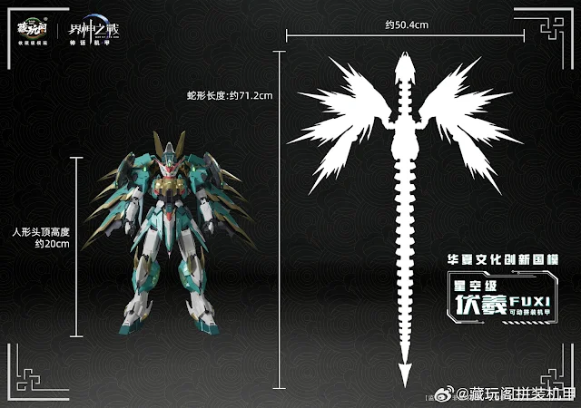 캉토이즈에서 뱀의 해를 맞아 자체 IP 계신지전(워 오브 더 갓) 신규 메카 프라모델 제품 ‘복희’의 CG 이미지를 공개했습니다. 복희는 중국 신화 속에서 신농(염제), 여와와 함께 삼황으로 불리우며 인간의 머리에 뱀의 몸을 가진 형상으로 알려져있습니다.