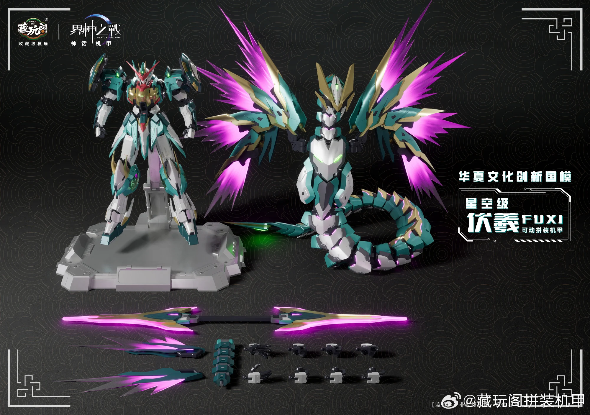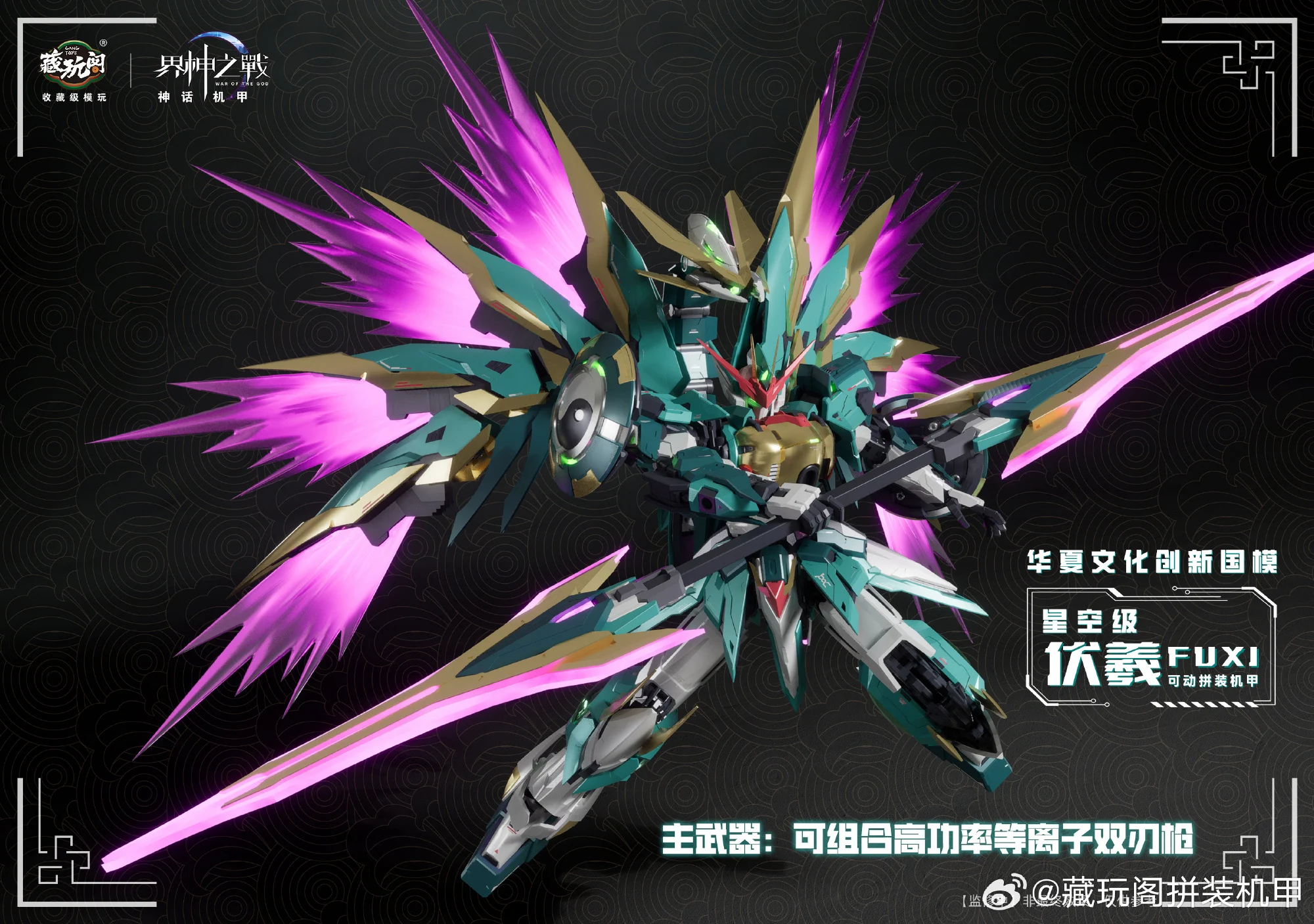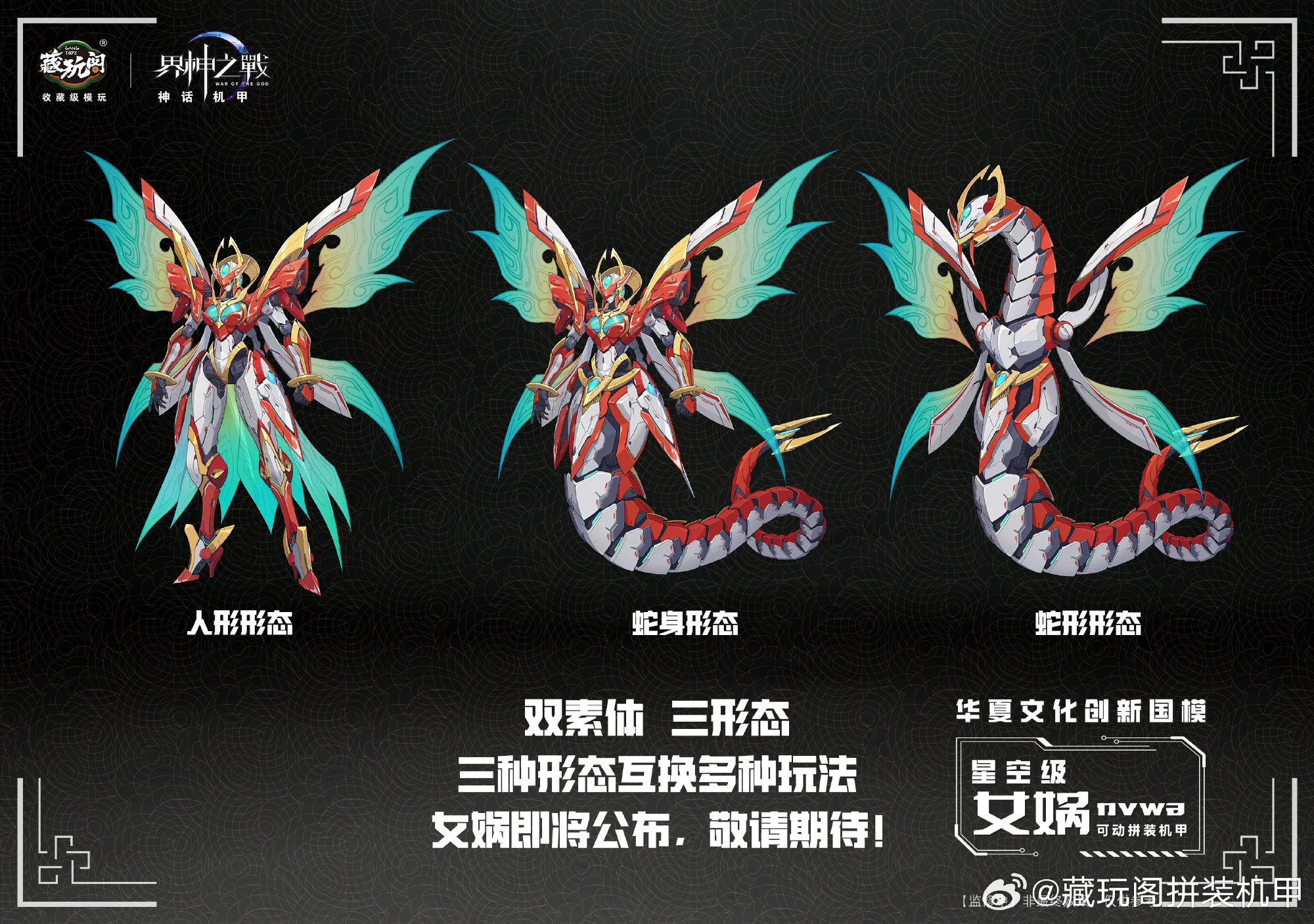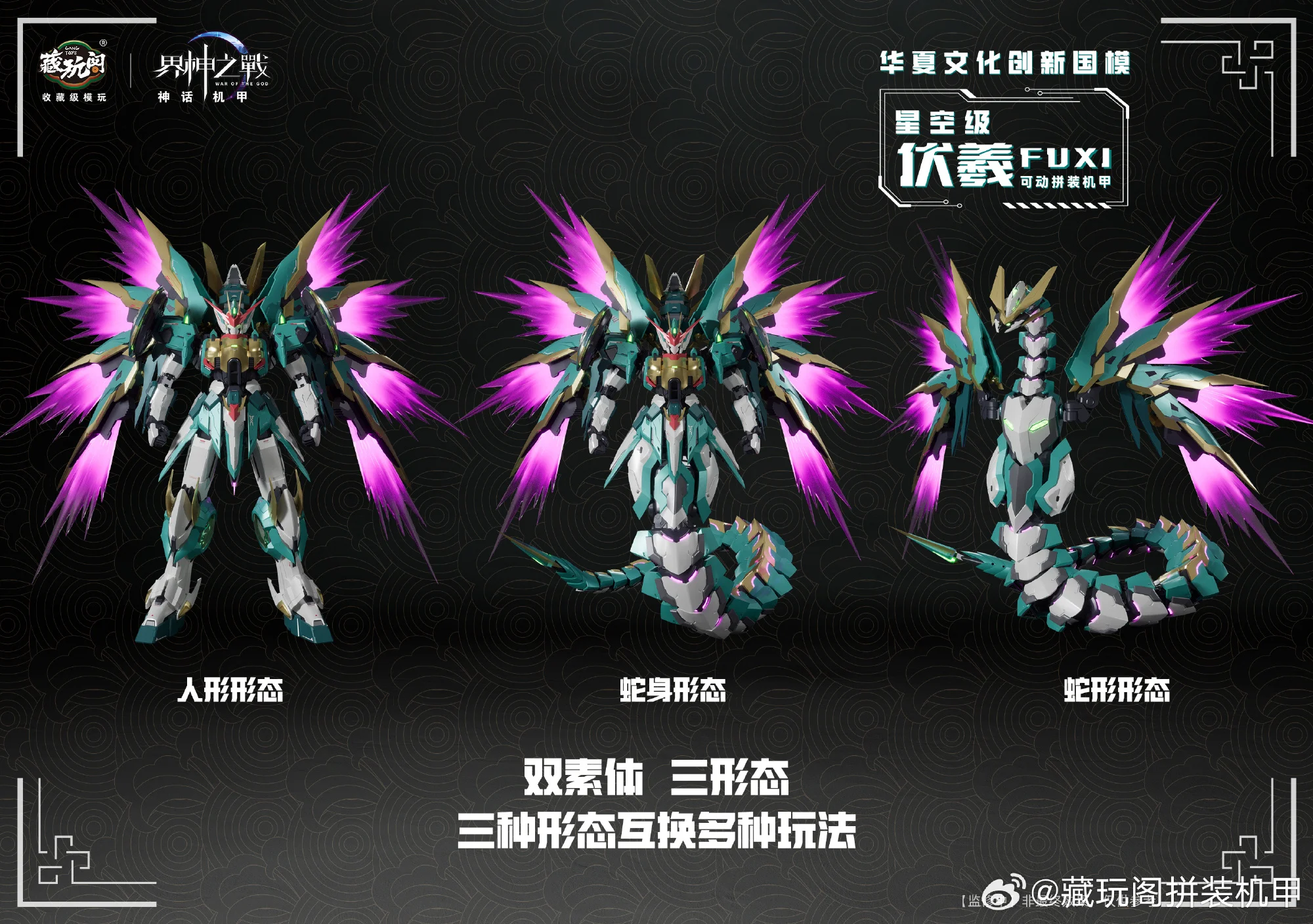 캉토이즈에서 뱀의 해를 맞아 자체 IP 계신지전(워 오브 더 갓) 신규 메카 프라모델 제품 ‘복희’의 CG 이미지를 공개했습니다. 복희는 중국 신화 속에서 신농(염제), 여와와 함께 삼황으로 불리우며 인간의 머리에 뱀의 몸을 가진 형상으로 알려져있습니다.