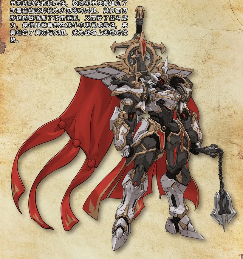썬데이하비에서 엠파이어하비와 협력 제작 중인 사일런트 트라이얼(프라모델)의 설정 이미지를 업데이트했습니다. 이번 업데이트에서는 천사의 헤일로 컨셉의 백팩 파츠와 이를 활용한 명예의 깃발 형태 구현이 눈에 띕니다. 그리고 기존의 대검 외에 사슬 달린 메이스 무장이 추가됐고 내부 프레임 디자인 이미지도 공개됐네요.
