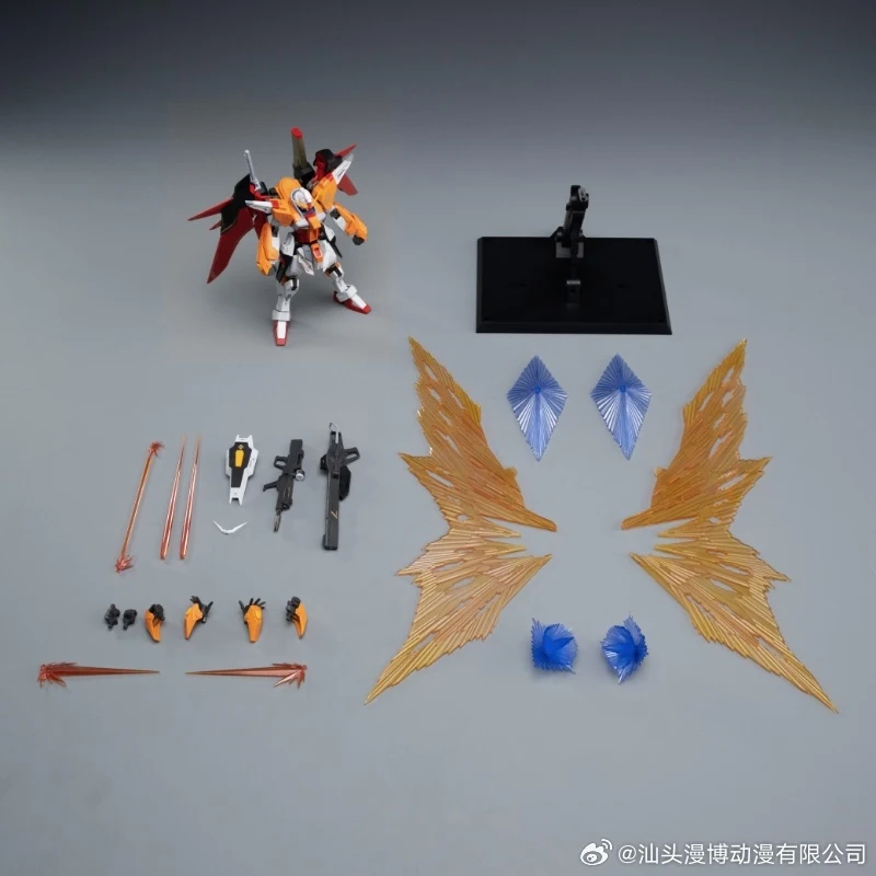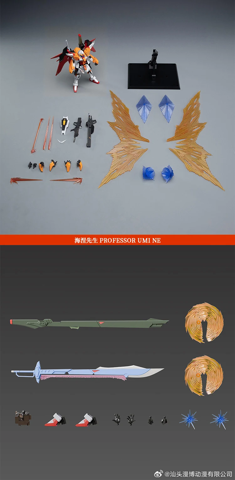 이번에도 합금프레임과 빛날 이펙트 파츠가 포함되어 있으며 소체 크기는 약 14cm, 빛날 장착시 최대 40cm까지 자리를 차지합니다. 그리고 증강 파츠 세트로 새로운 고관절(가동성 향상)과 발목 관절(접지력 향상), 원근법에 따라 앞쪽 크기는 키우고 뒤쪽 크기는 줄인 런처와 소드 파츠, 회전 이펙트 파츠, 손바닥 쪽 이펙트 파츠, 여러 종류의 조형손 세트가 동봉됩니다. (* 자세한 구성품은 아래 사진 참고)
