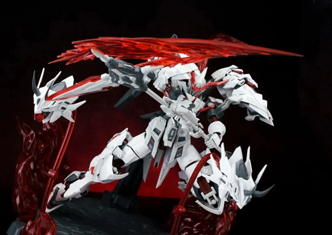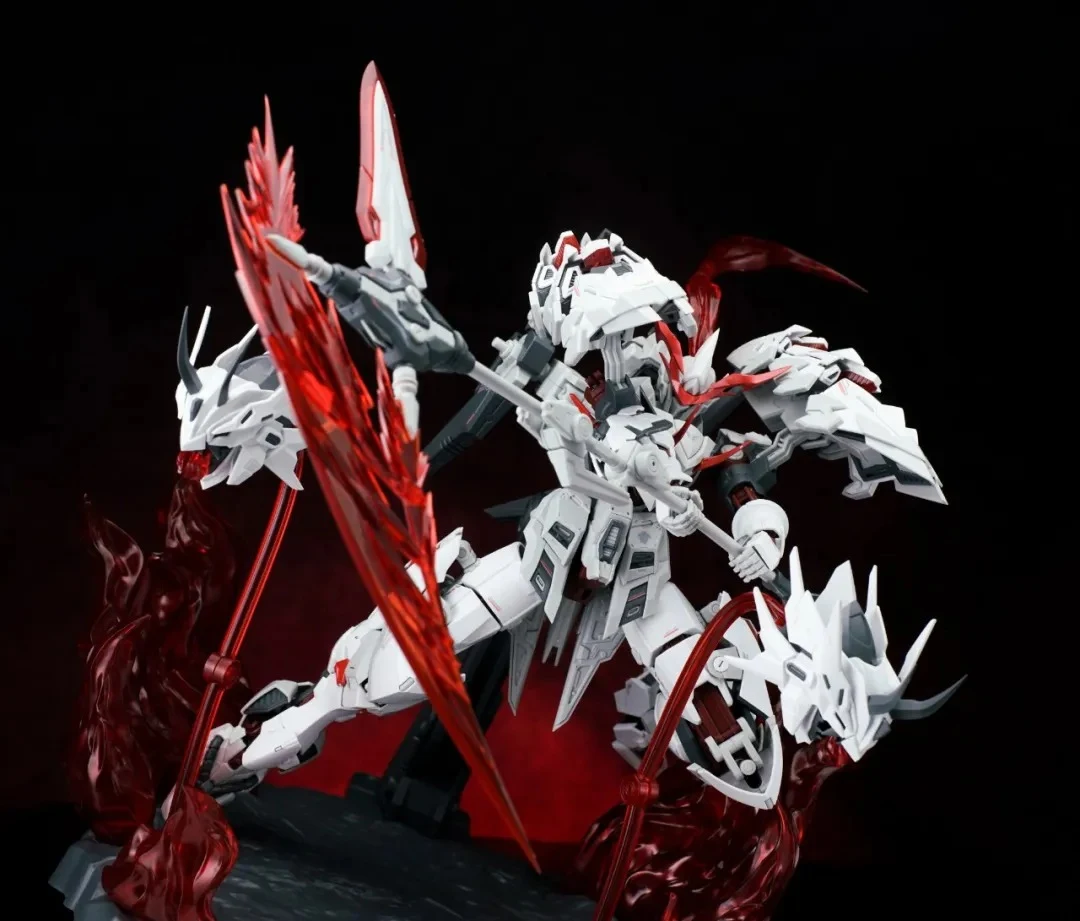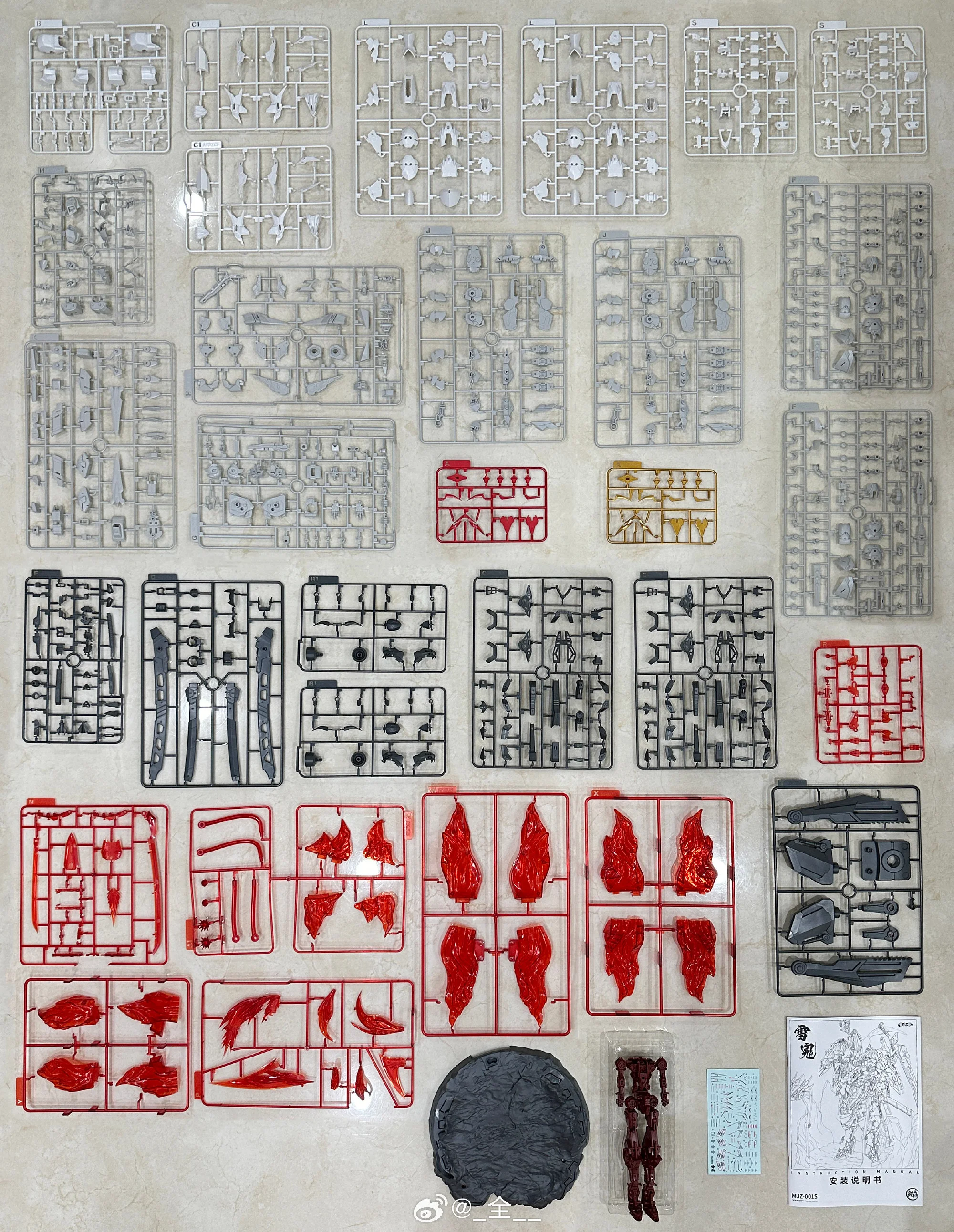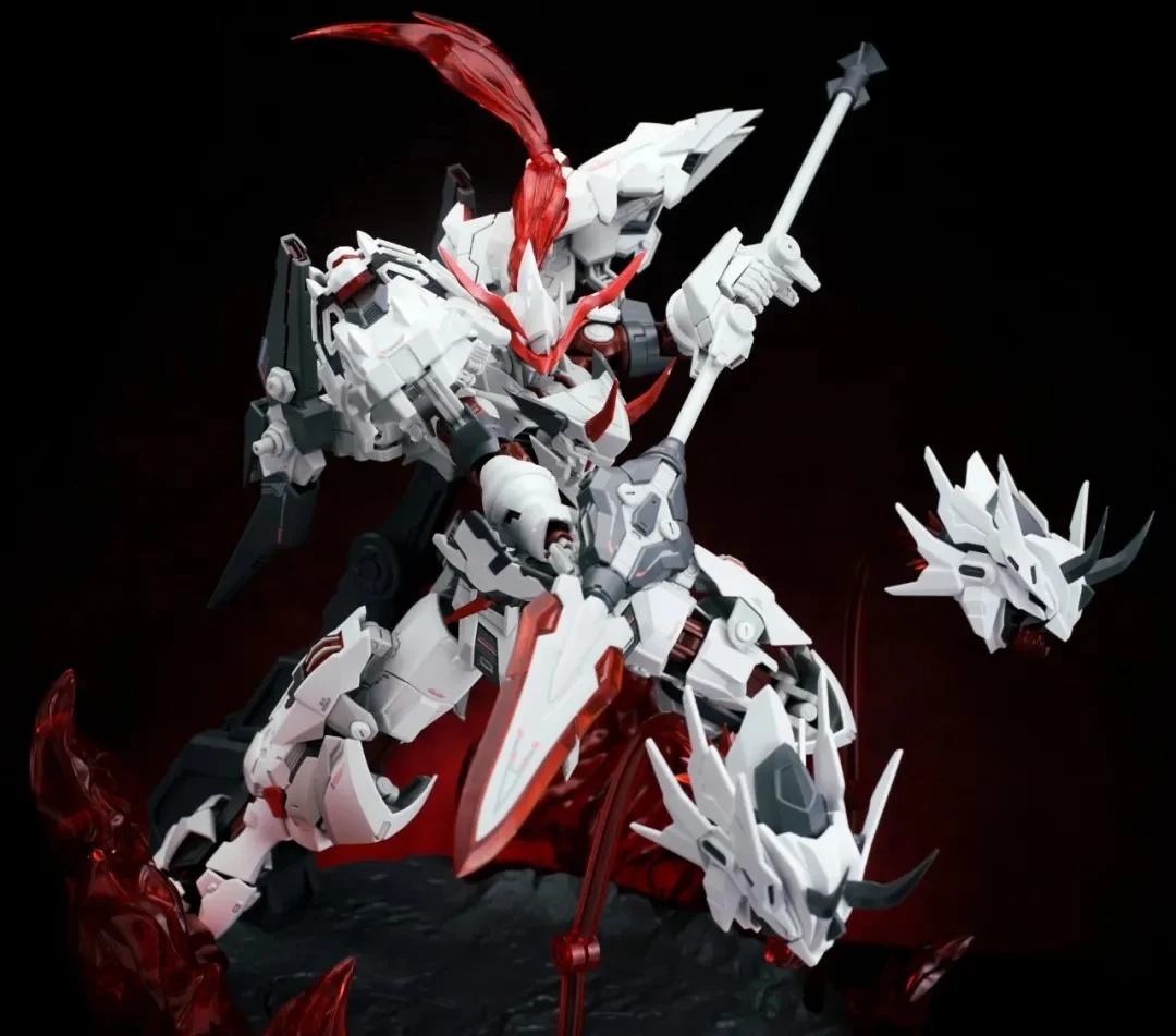 우선 메인 컬러인 화이트는 화이트와 그레이 화이트 투톤이며 메탈릭 레드와 메탈릭 골드 컬러(사전 도색 처리)로 포인트를 줬습니다. 내부 프레임은 사전 조립되어 있으며, 적귀약의 초회 물량에 동봉된 귀면 불꽃 이펙트 파츠도 동봉되어 있습니다. 성형 사출색, 조립성과 프레임 관절 강도 등은 첫 제품 적귀약 대비 향상됐다는 평이네요 ^^ (* 설귀 출시 후에 얼른 소요자 제작 근황도 업데이트해주면 좋겠습니다;)