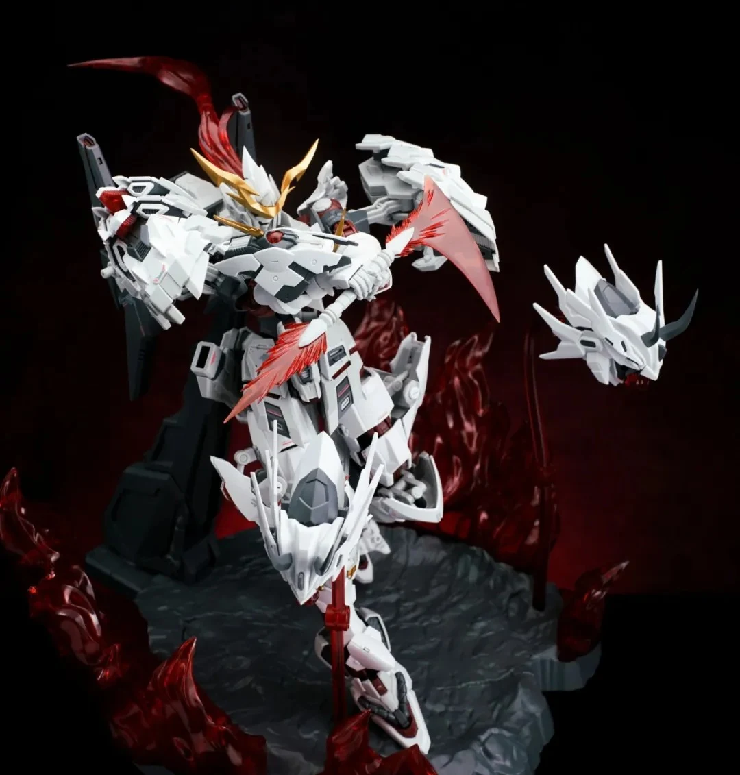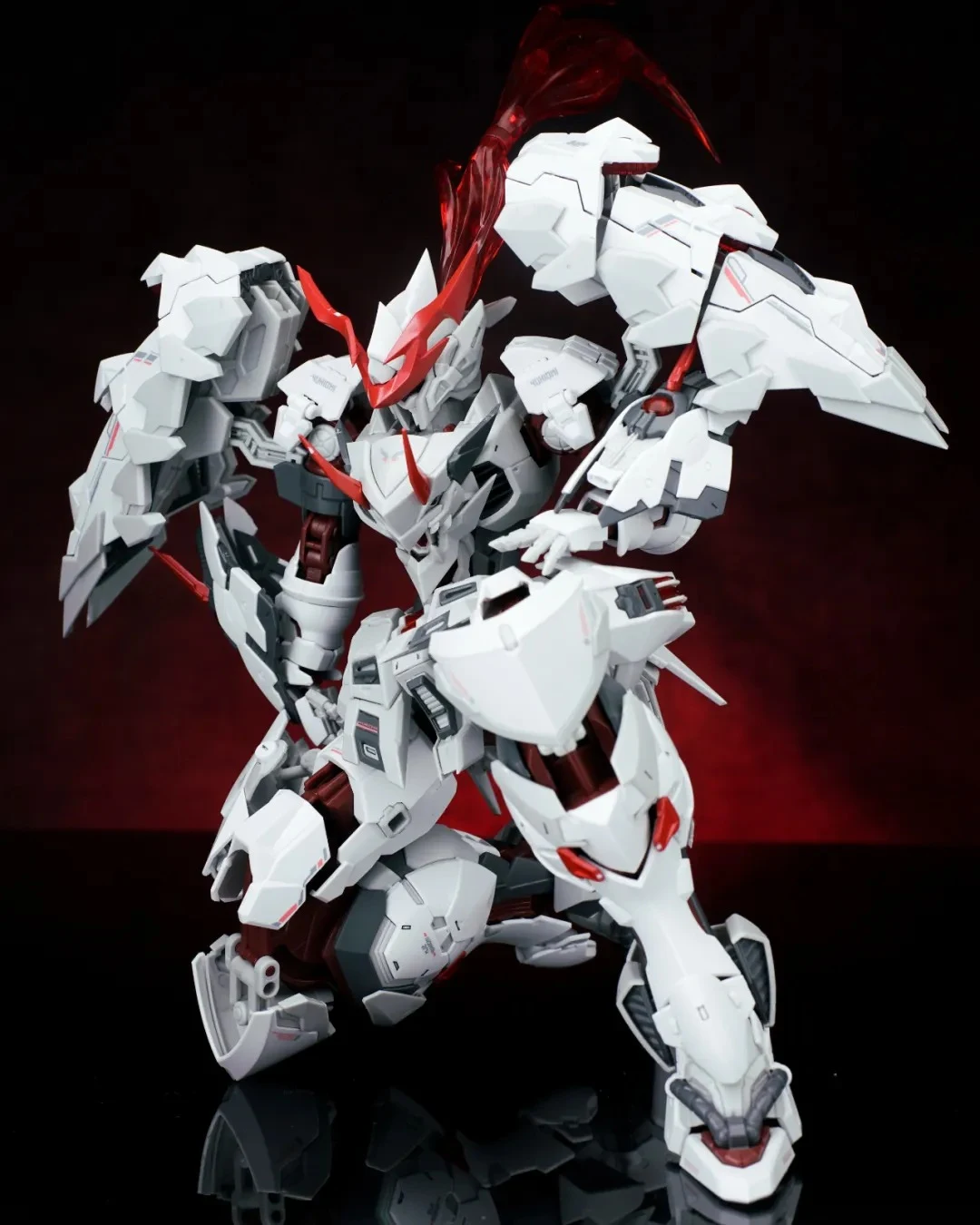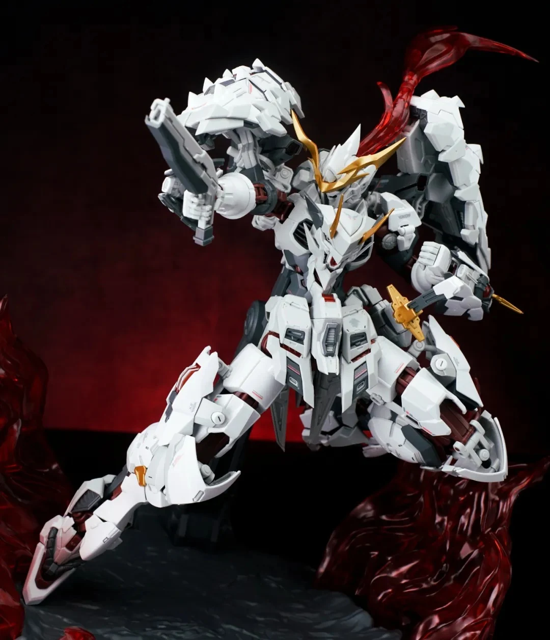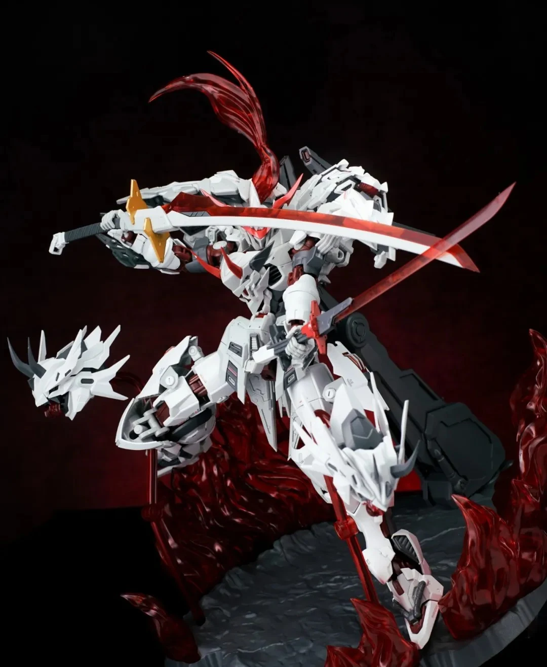 우선 메인 컬러인 화이트는 화이트와 그레이 화이트 투톤이며 메탈릭 레드와 메탈릭 골드 컬러(사전 도색 처리)로 포인트를 줬습니다. 내부 프레임은 사전 조립되어 있으며, 적귀약의 초회 물량에 동봉된 귀면 불꽃 이펙트 파츠도 동봉되어 있습니다. 성형 사출색, 조립성과 프레임 관절 강도 등은 첫 제품 적귀약 대비 향상됐다는 평이네요 ^^ (* 설귀 출시 후에 얼른 소요자 제작 근황도 업데이트해주면 좋겠습니다;)