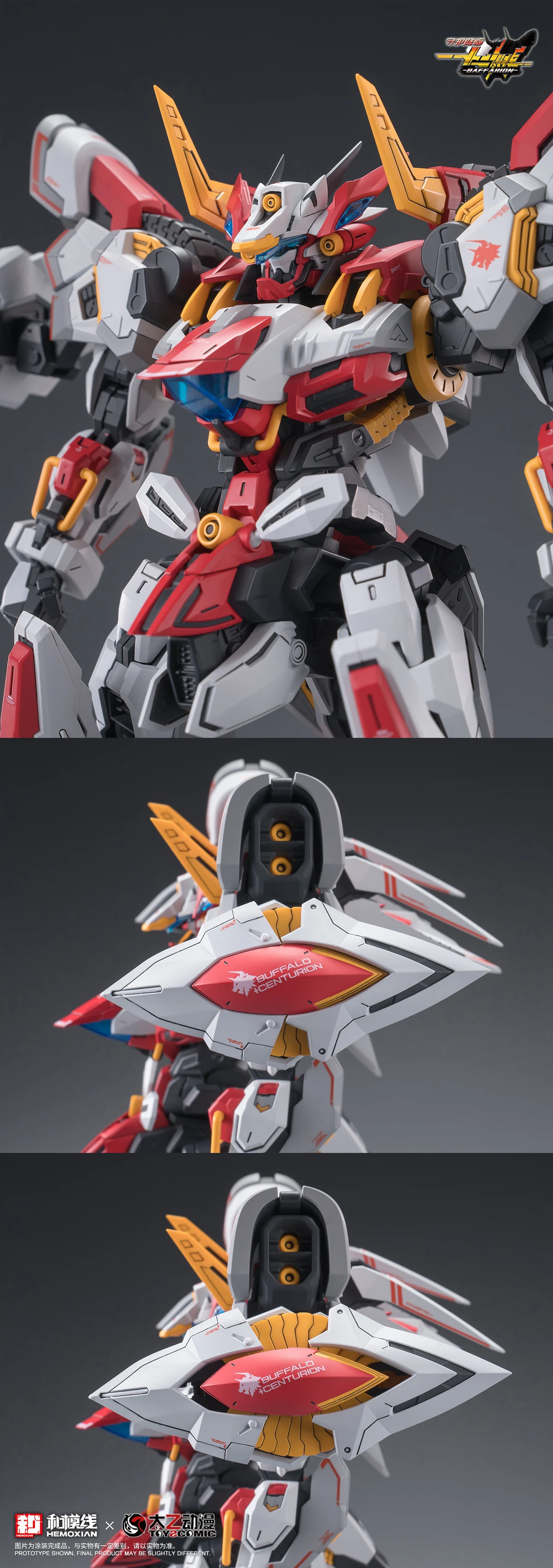 예전 블로그 포스팅을 살펴보니…2023년 5월 시즈오카 하비쇼에 전시된 수호강림-십이신장 시리즈 목업을 소개드렸었는데요. 올해가 2025년이니…공식 사진 공개까지 상당히 오랜 시간이 걸렸네요. 시리즈 명칭이 십이신장인만큼…중국의 십이지신을 테마로 하고 있으며 바페리온은 그 중 ‘소(황소)’를 메카화한 제품입니다. 일전에 공개된 목업 사진을 보면 바페리온 다음은 ‘돼지’를 메카화할 것으로 보이는군요 ㅎㅎ