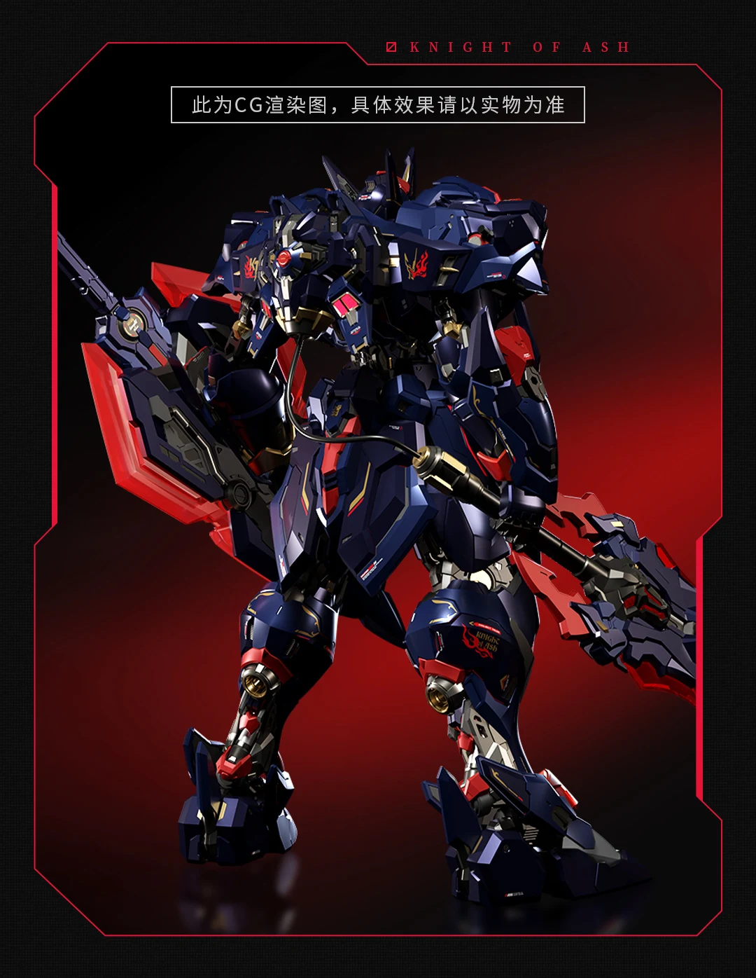 나이트 오브 애쉬는 기존 호수의 기사에서 신규 컬러 적용, 염일중검 X 1과 훼멸의 근원(에너지팩, LED 유닛 동봉) X 1이 신규 무장으로 추가됐구요. 100% 달성 특전으로 적열의 창 X 1이 제공됩니다. 만약 150% 달성하게 되면 추가로 특전이 제공될 예정인데…그건 아직 디자인 및 내용물 미공개랍니다 ^^;
