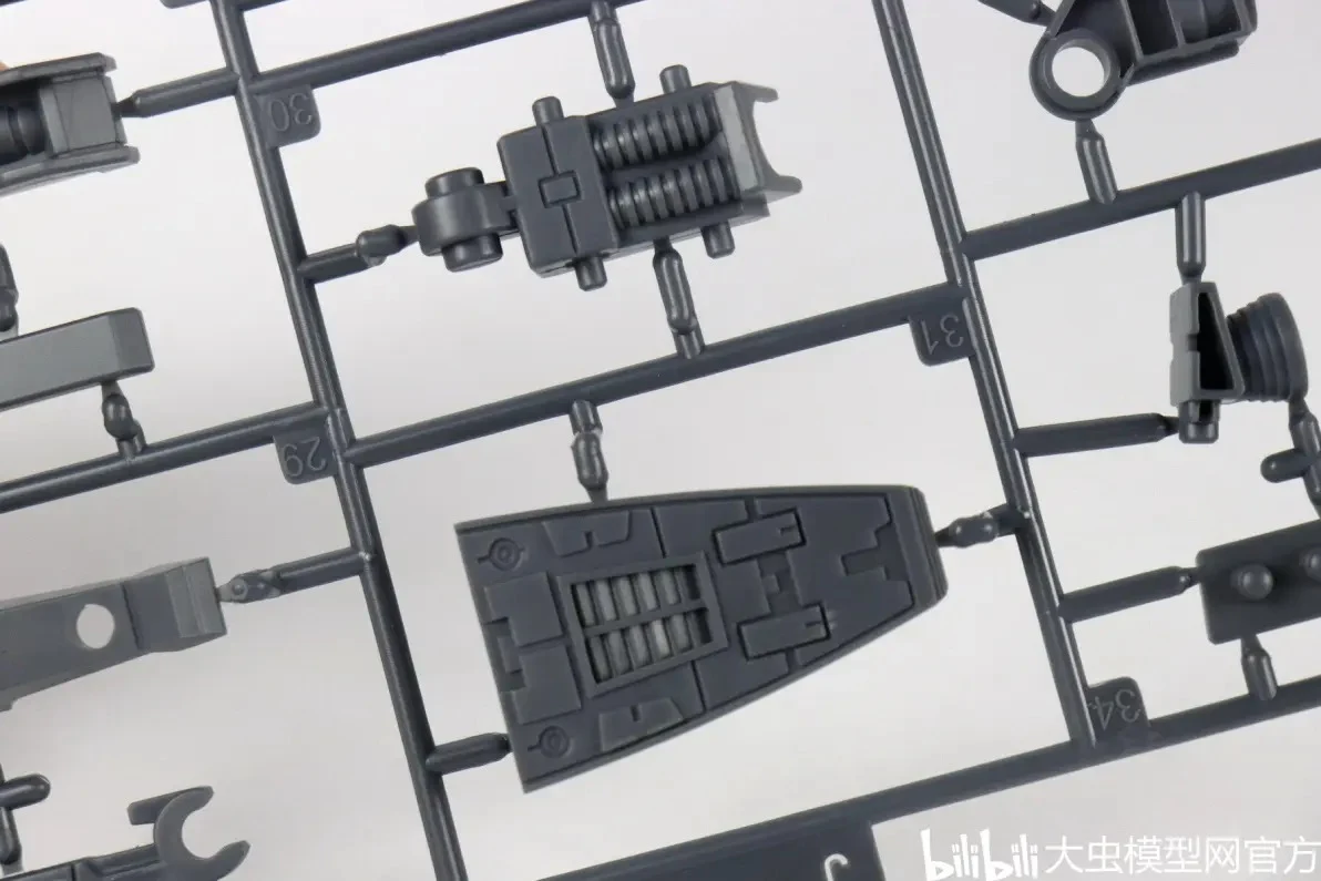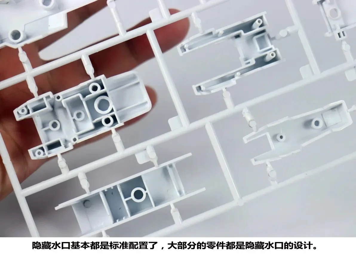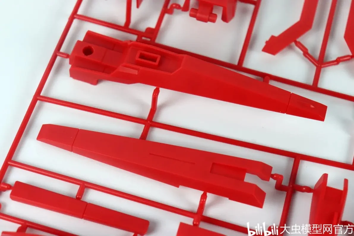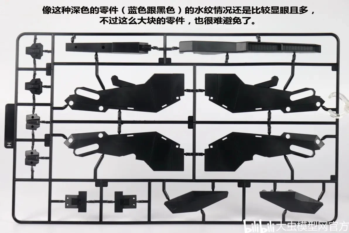 - 런너는 무광 재질의 소재를 사용해 표면 자체에 무광 효과가 있으며, 질감도 꽤 좋다고 합니다. 사출 품질 부분에서도 뭉툭하거나 뭉개짐 없이 디테일이 선명하고 엣지가 살아있다는 평입니다. 눈에 띄는 수축 문제도 없구요. 다만, 블루나 블랙 같은 진한 컬러의 커다란 파츠 파츠 런너에 물결무늬(웰드라인)이 좀 보이는 편입니다. 볼륨이 좀 있는 파츠에서 흔희 보이는 문제이긴 합니다만…호불호가 있을 수 있으니 참고하세요!