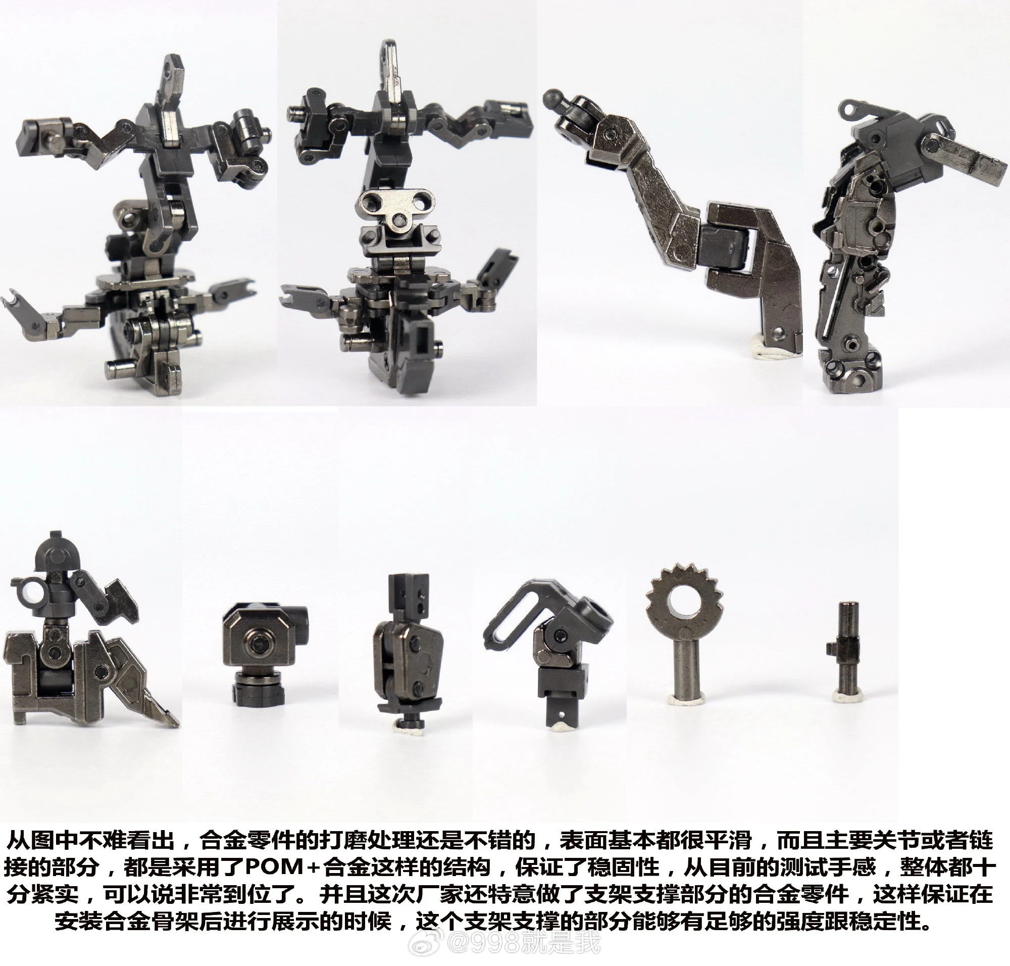- POM과 합금 파츠 조합으로 제작됐습니다. 커다란 관절 파츠부터 작은 연결 부위까지 모두 POM+합금 조합이므로 고정성 및 안정성은 걱정하지 않아도 될 정도로 관절 강도가 타이트합니다.