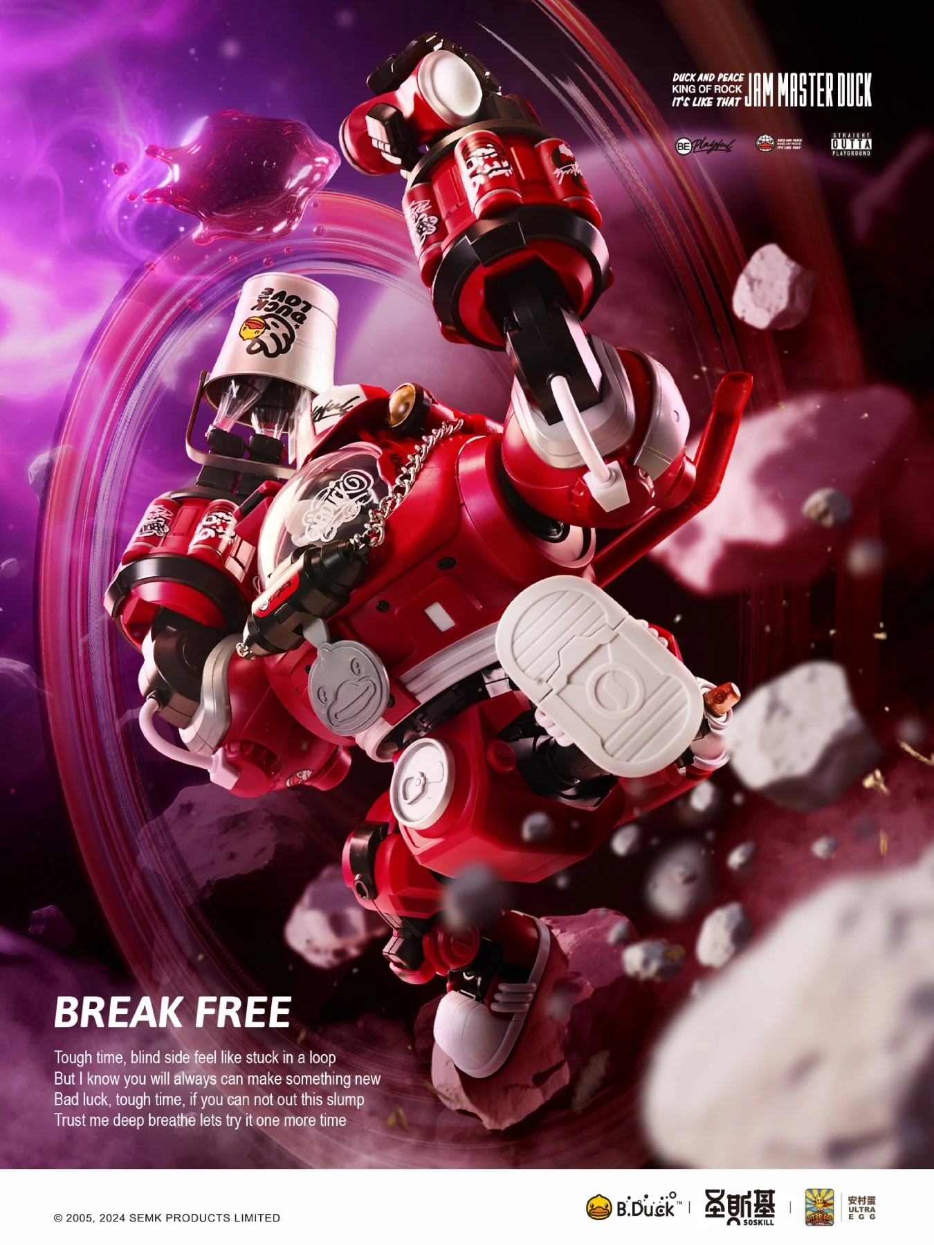 소스킬에서 B.Duck 콜라보 두번째 제품인 힙합 덕(프라모델)의 공식 사진과 출시 정보를 공개했습니다. 스파 덕이 일본식 온천 스타일이었다면 힙합 덕은 거리의 힙합 문화에서 영감을 받아 콜라, 야구, 스케이트 보드, 그래피티, 힙합 랩 등 요소가 담겼네요.
