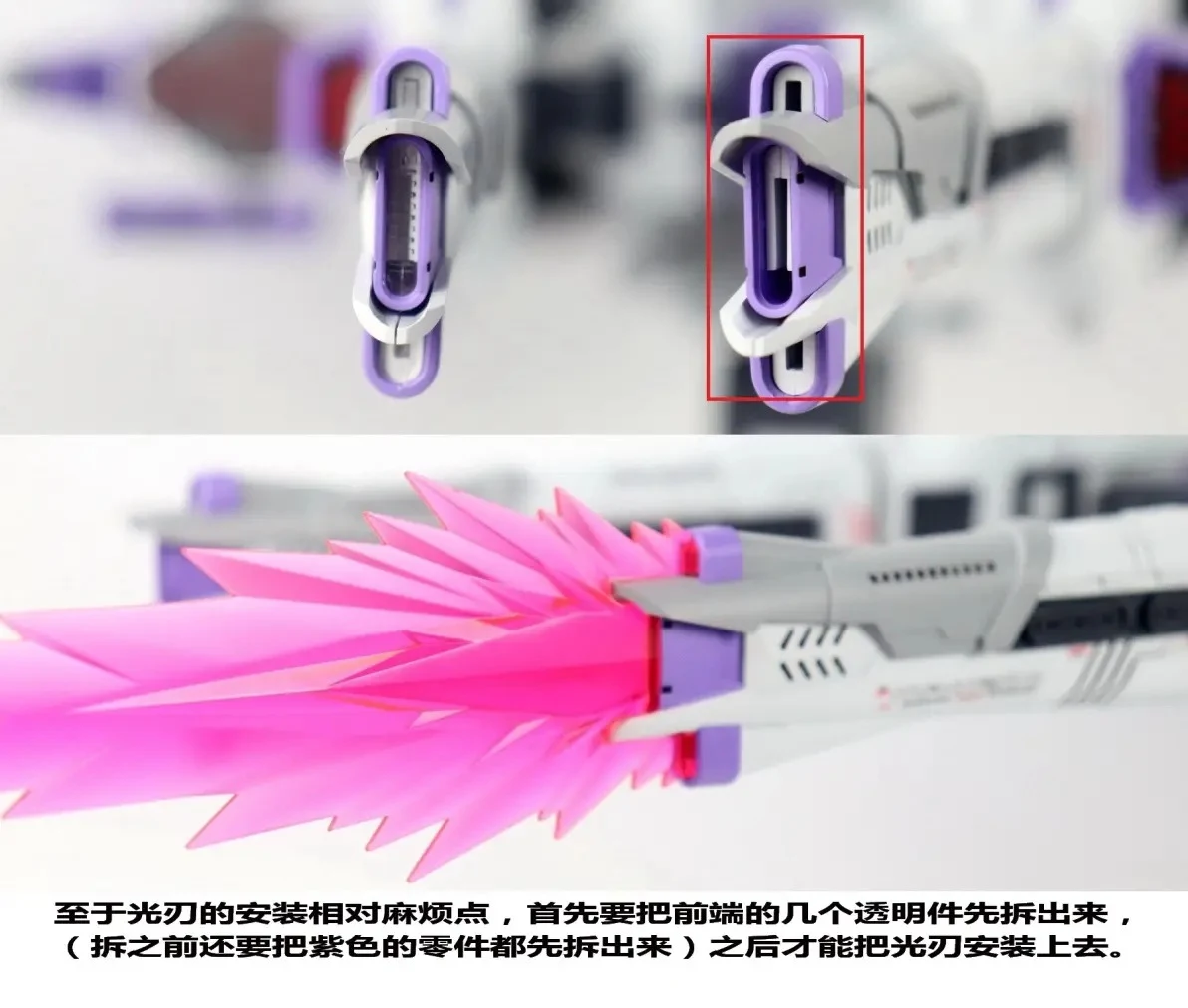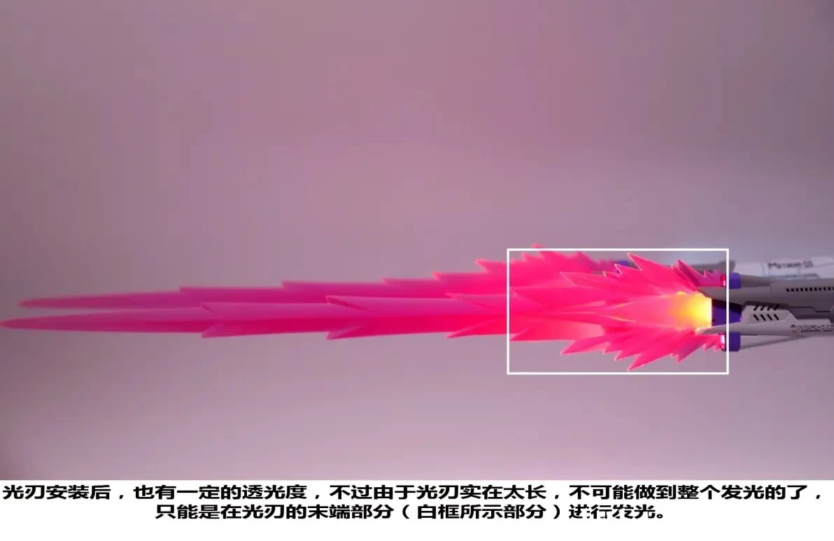| 이펙트 파츠가 너무 길다보니 LED 빛이 이펙트 파츠 끝부분까지 닿진 않습니다 |