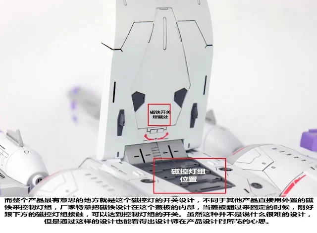| 열고 닫는 부위 안쪽에 LED와 LED ON/OFF용 자석을 적용해 상단 파츠를 닫으면 LED가 켜지는 구조입니다 |