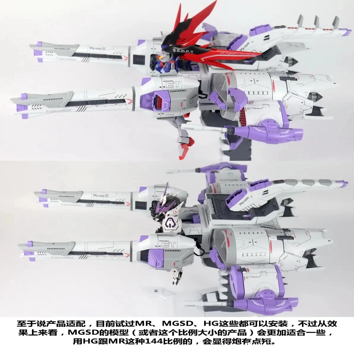 - HG, 메탈 로봇혼, MGSD 등급과 호환됩니다. 1/144 크기는 비율이 조금 어색하긴 해도 미티어 유닛에 태울 수 있으며, 가장 적합한 건 MGSD이긴 합니다.