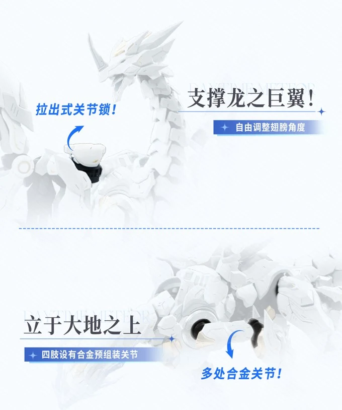 | 1) 거대한 날개를 지탱하기 위해 관절 락 적용(당기기) 2) 4개 다리 부위에는 사전 조립된 합금 관절 적용 |
