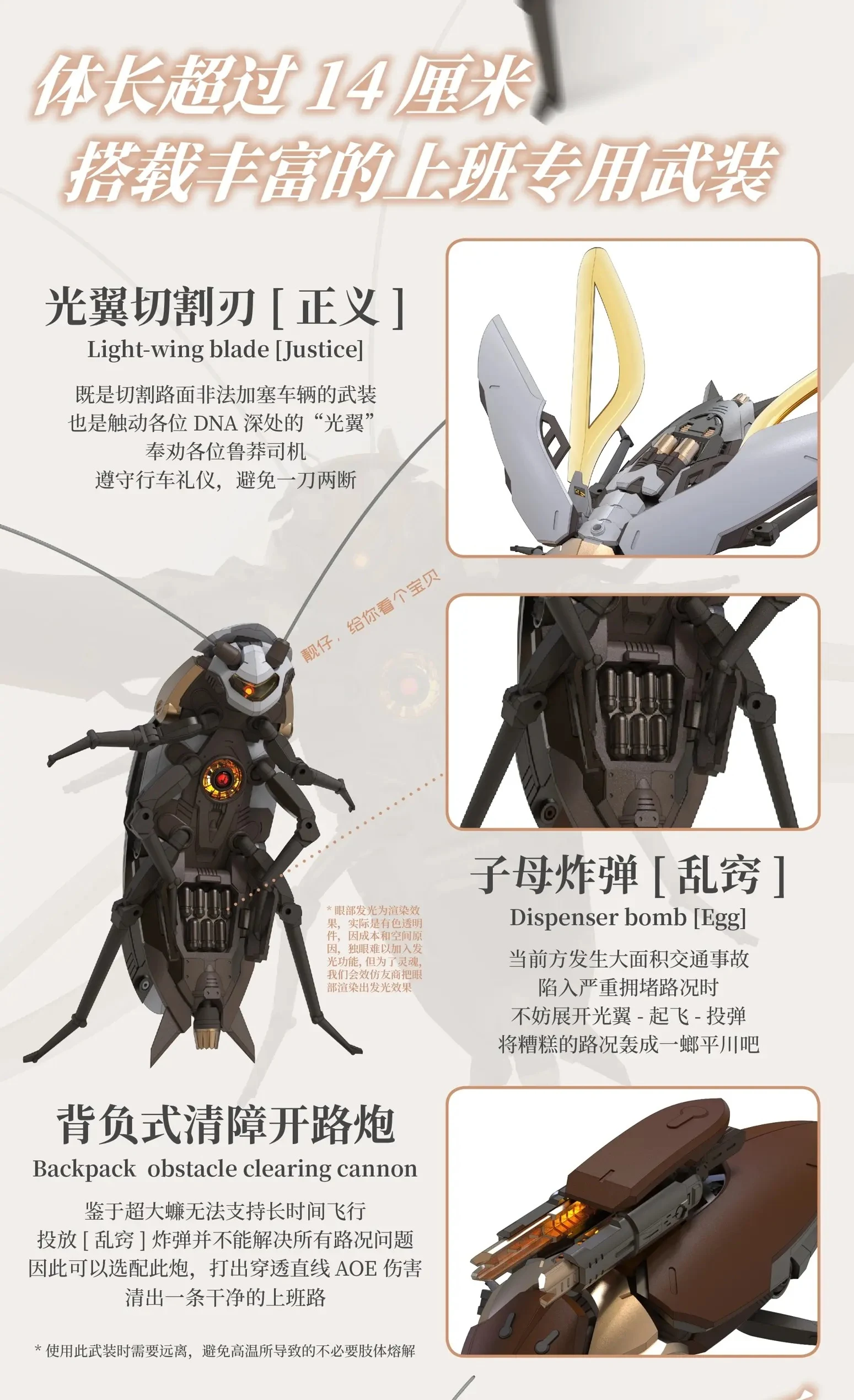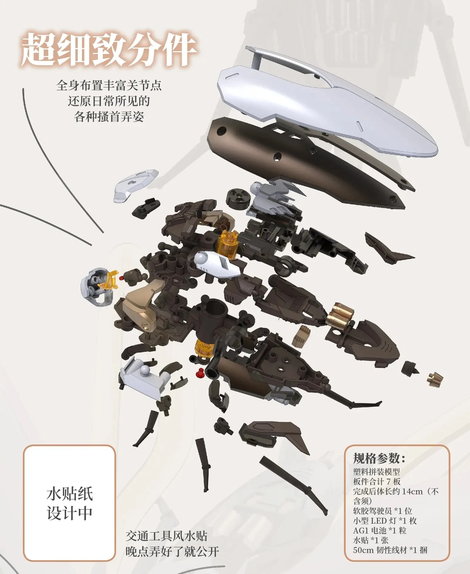 - 파일럿 미니 피규어 1개(바퀴벌레를 타고 출근하는 광둥인), 소형 LED X 1, AG1 배터리, 습식 데칼 X 1, 바퀴벌레 지느러미용 케이블(50cm)