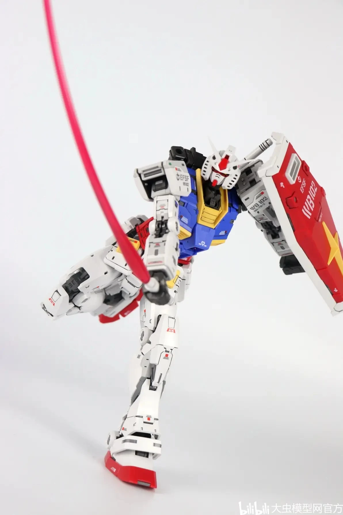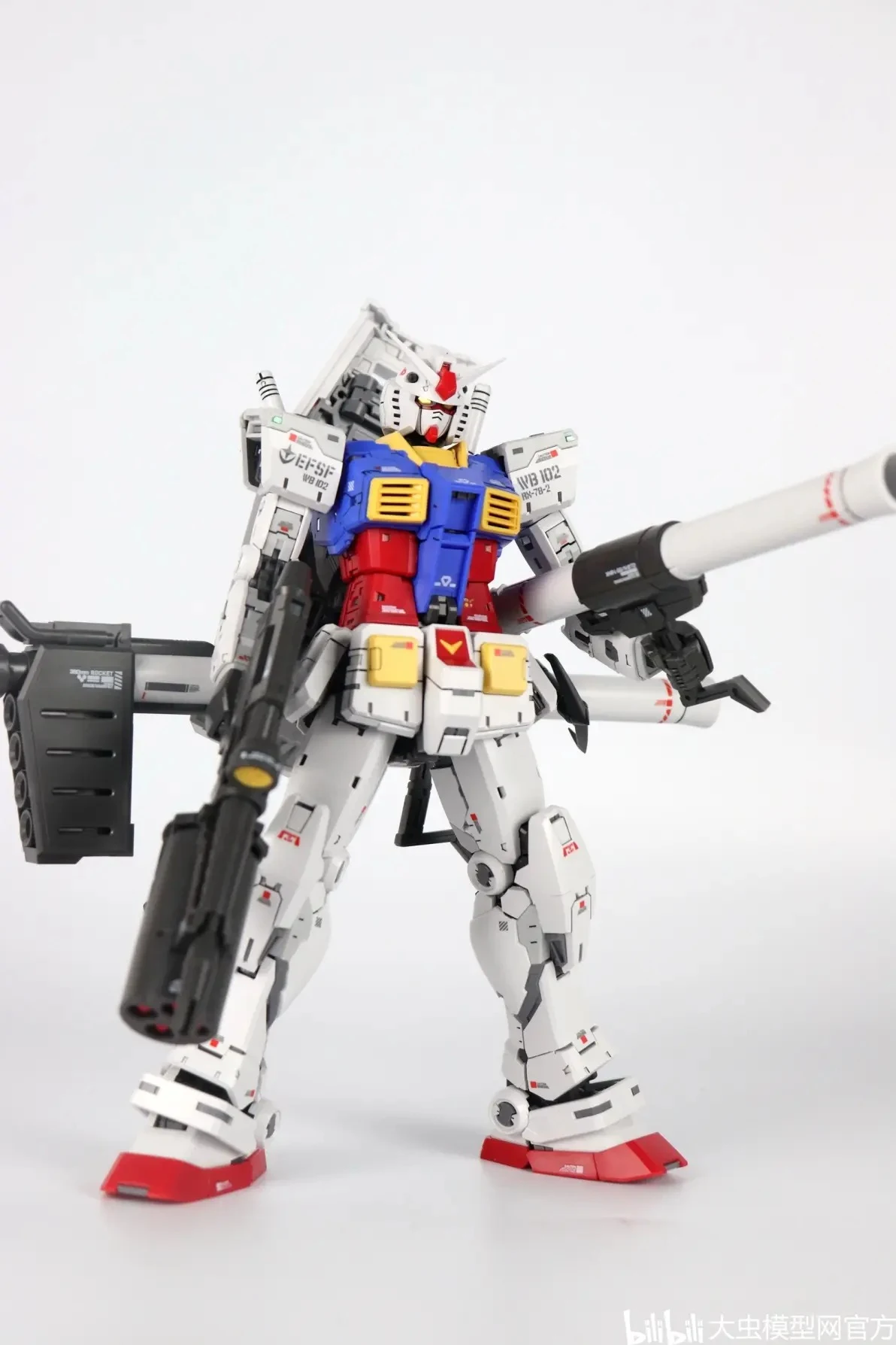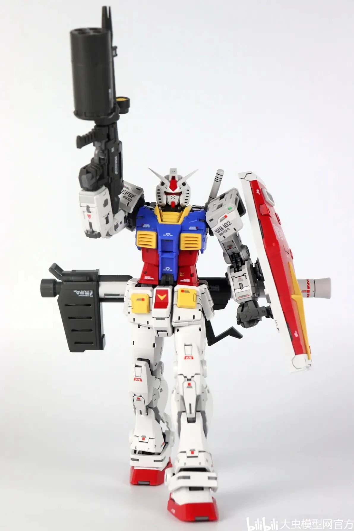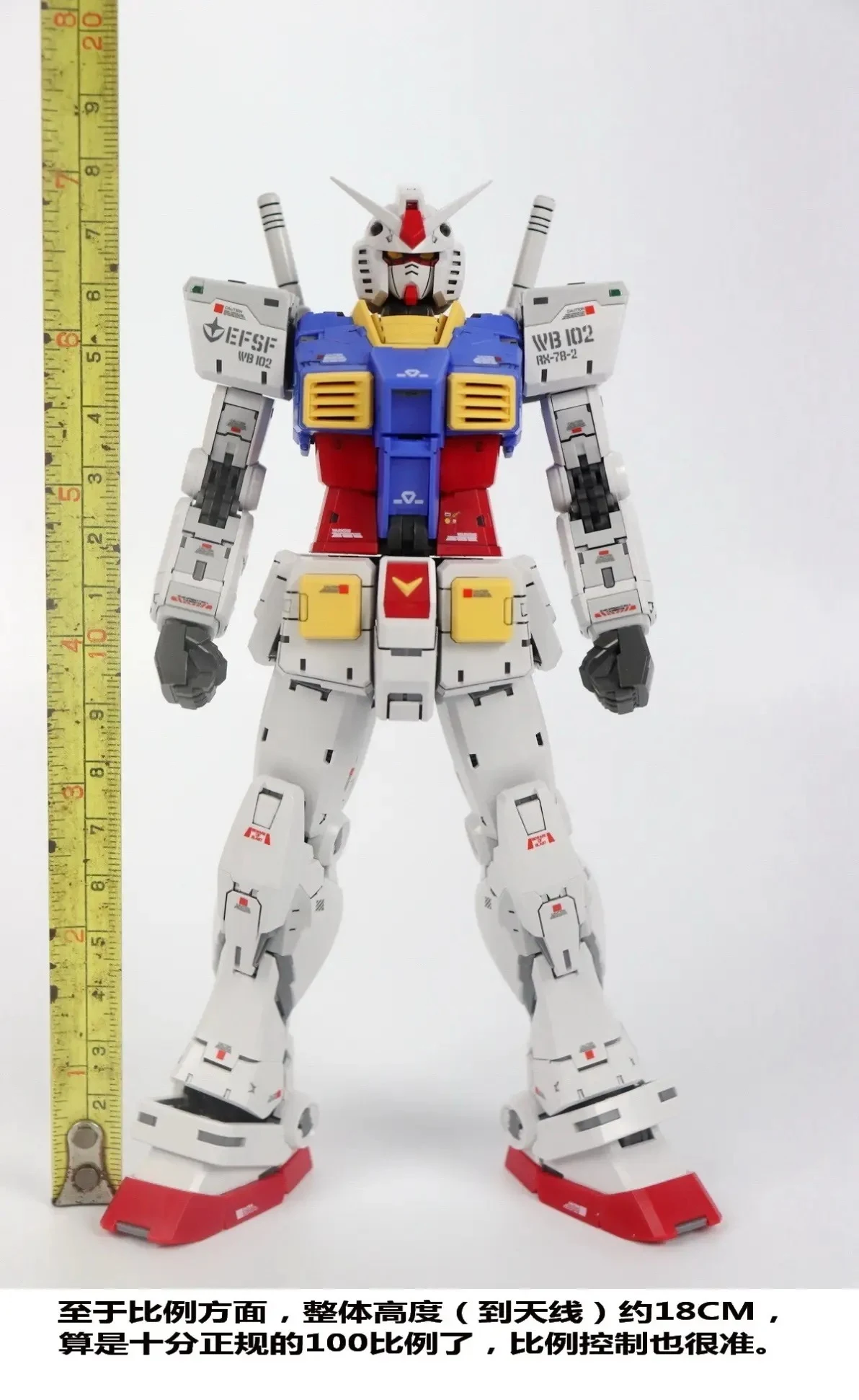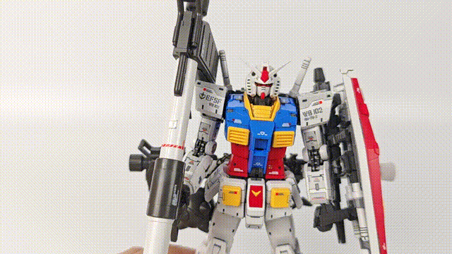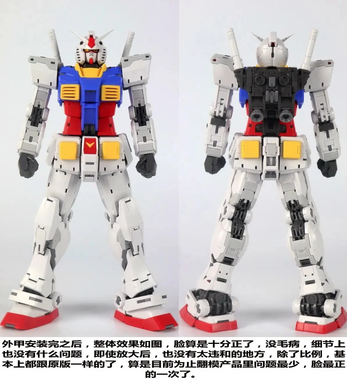 | 외장 조립 후 모습입니다. 마찬가지로 별다른 문제가 없으며 얼굴이 삐뚤어짐이 바르게 잘 나왔습니다. 1/100으로 확대됐다는 것만 빼면 RG와 동일합니다. 현재 기준, 확대 카피 제품 중 가장 얼굴이 제대로 나온 제품이라고 할 수 있네요 |