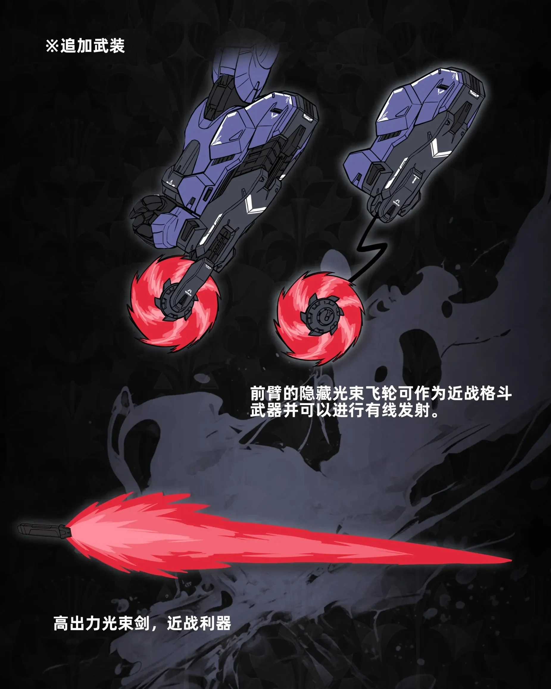 이번 피안화는 첫 제품의 만다라에 소비자 피드백과 건의를 반영해 디자인을 업그레이드했다고 합니다. 무장도 추가됐구요. 다만, 만다라보다도 더 휘케바인스러워지긴 했네요. 특히, 안티매터 캐논이라고 하는 메인 무장도…^^; 요 무장에는 버스트 기믹과 이펙트 파츠가 적용될 예정입니다.