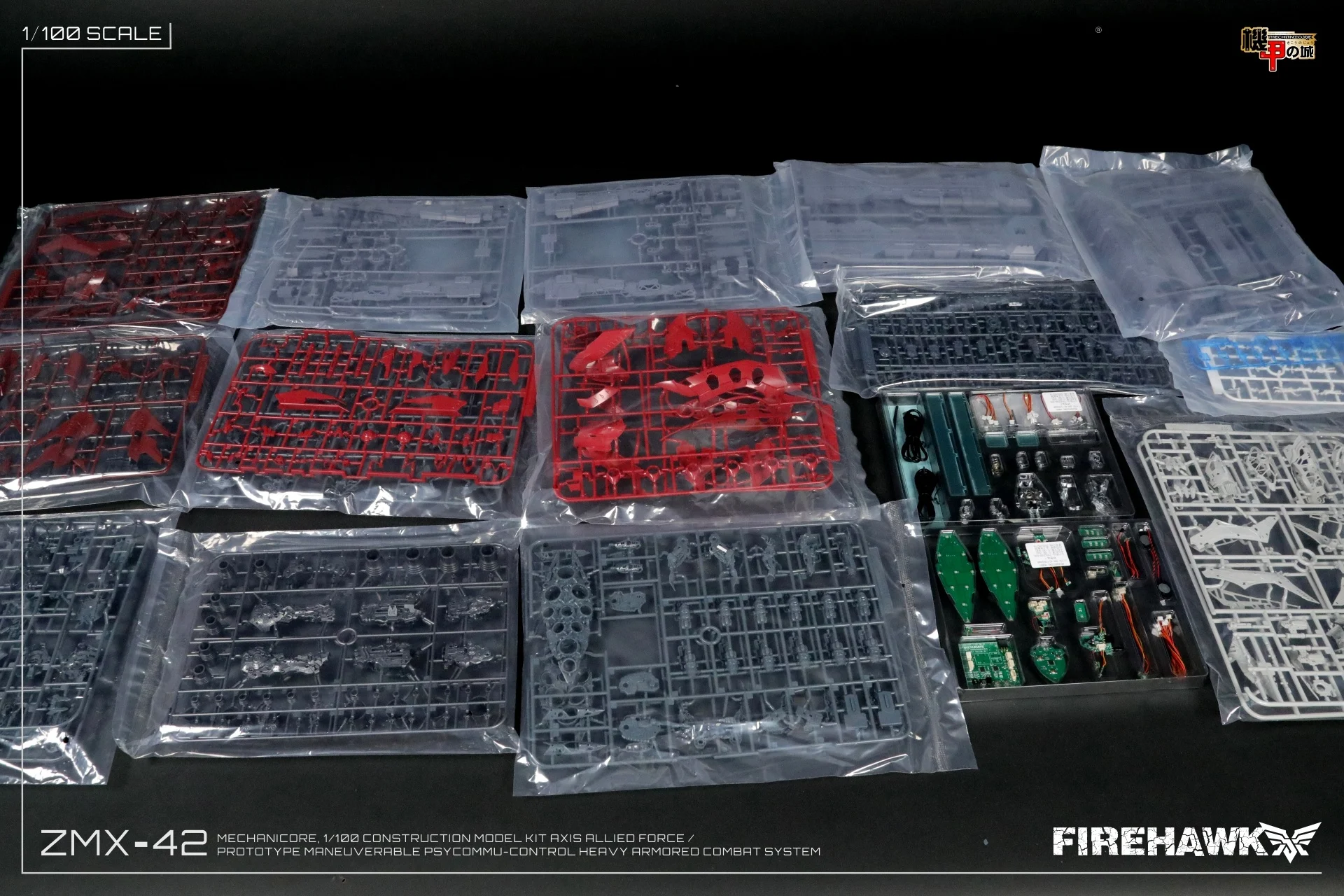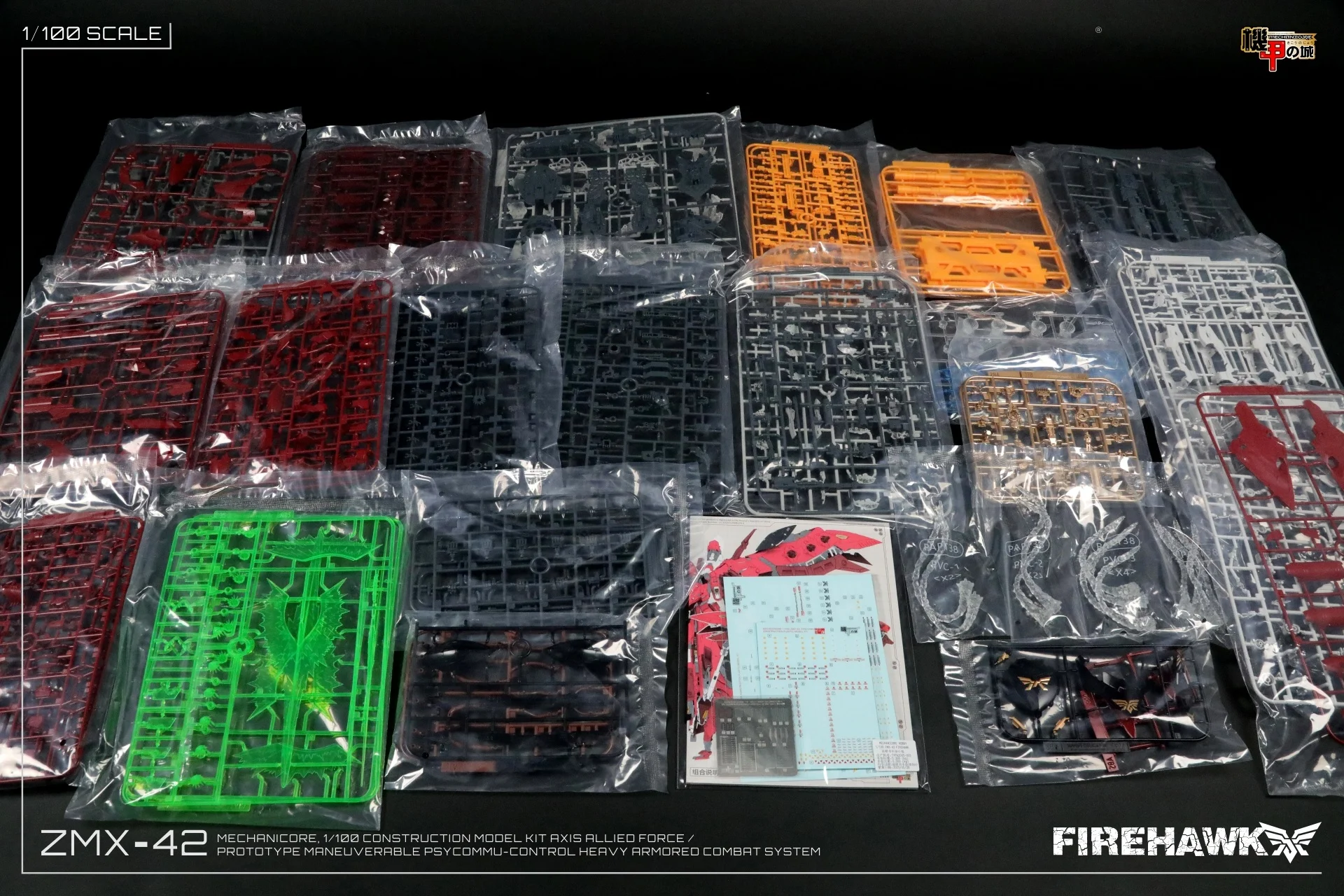 메카니코어가 올해 4월 공지를 통해 1/100 파이어 호크(프라모델)의 출하 시기를 5월 중하순 쯤으로 예고했었는데요. 오…드디어 제품 개봉 및 런너 구성 사진을 공개됐습니다. 물량 규모는 모르겠지만…별일이 없다면 조만간 출하가 이뤄질 것으로 보이네요! (* 파이어 호크: 2023년 12월 공개) 오래 기다리신 분들에게는 희소식이 되겠군요 ^^