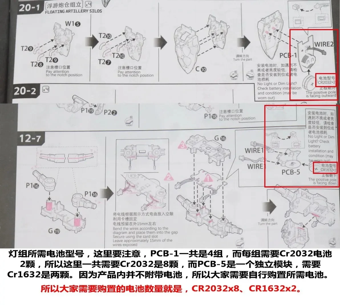 | 1. PCB-1 기판이 총 4개인데 기판별로 CR2032 배터리 2개가 들어가므로 총 8개의 CR2032 배터리가 필요합니다. 2. PCB-5 기판에는 CR1632 배터리 2개가 필요합니다. |