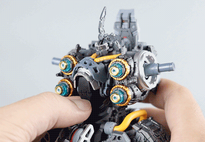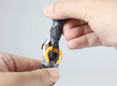 | 손목은 이중 관절 구조로 1개의 축 관절에 팔목과 손이 연결되어 있습니다. 관절 강도가 약한 편이긴 한데... 다행히 커다란 무장 파츠는 없어서 그리 큰 문제가 되진 않습니다 |