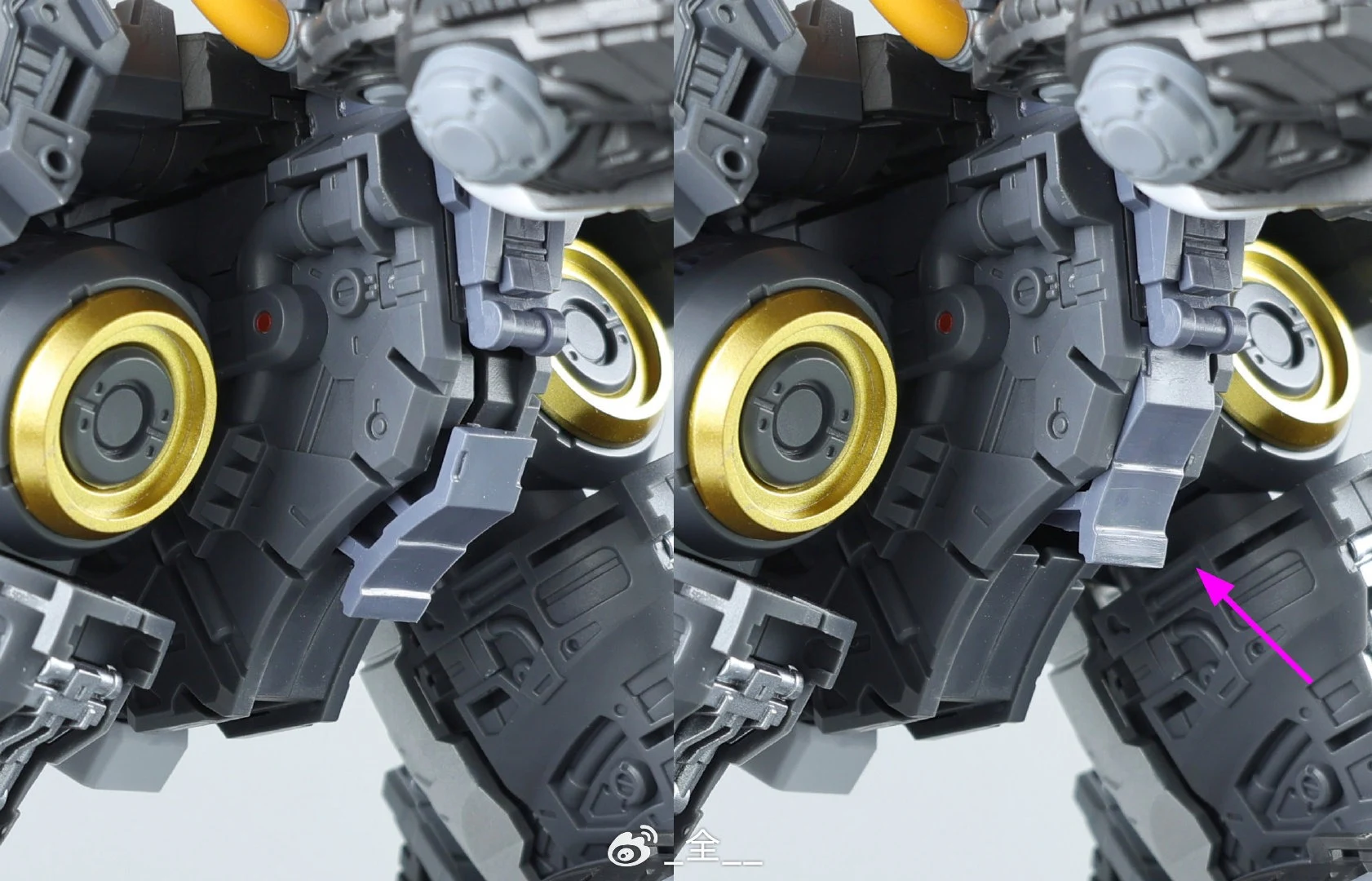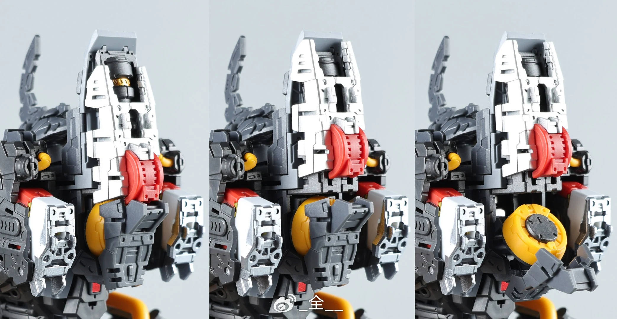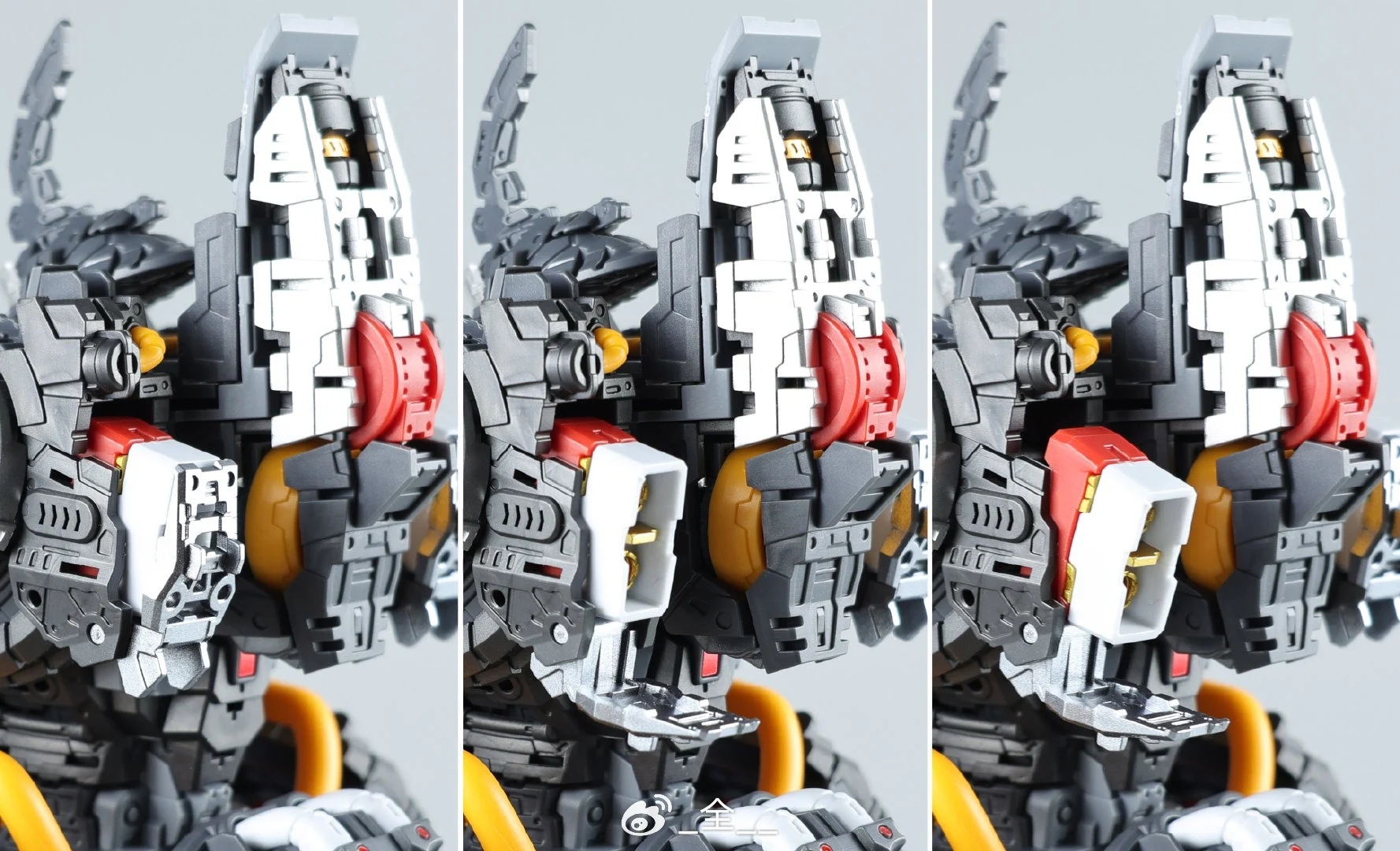 | 색 분할에 상당히 신경을 쓴 모습입니다. 가슴의 양쪽의 메가입자포도 골드 2종과 실버 컬러로 분할되어 있습니다 |