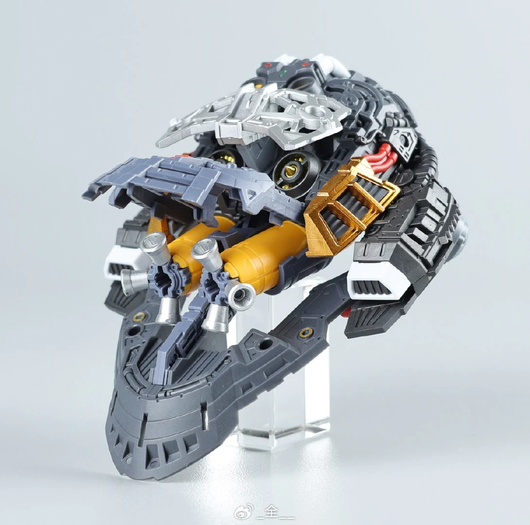 | 볼륨이 큰 만큼 설정을 토대로 디테일과 파츠 분할이 세밀하게 구현됐습니다. 프레임은 외곽을 덮어주는 커다란 외부 프레임과 세부 기믹과 디테일을 표현한 내부 프레임으로 구성되며 동일 컬러도 톤 분할이 되어 있습니다. 프레임 자체만으로도 입체감이 상당하네요. |