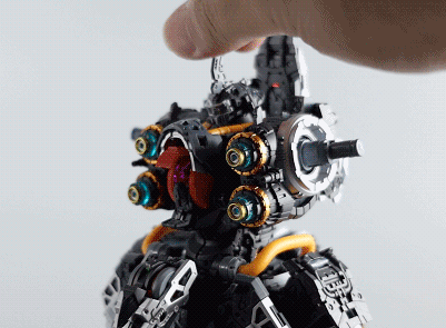 | 가슴과 콕핏 내부에 LED 유닛이 있습니다. 각 부위에 적지 않은 연동 및 전개 기믹도 갖춰져있구요. 저작권은 없지만, 전체적인 구조 및 기믹들은 오리지널이라고 할만한 모습입니다. |