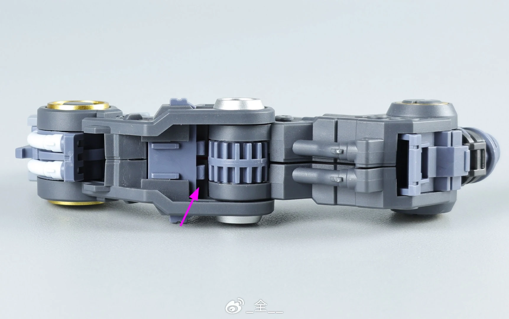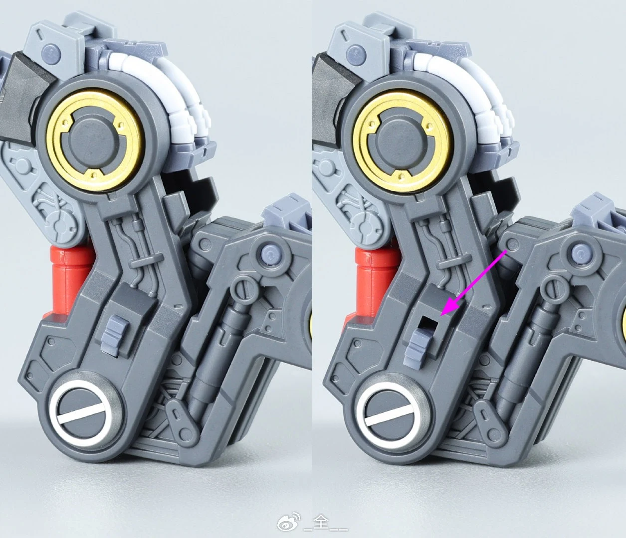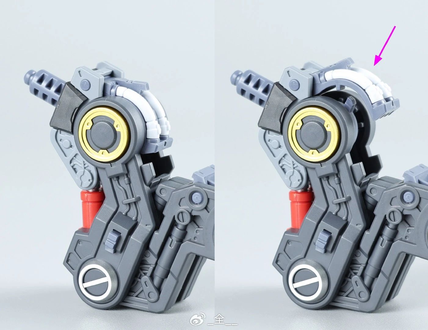 | 많은 분들이 관심을 가졌던 바인더와 본체 연결부 파츠입니다. 사진의 원형 마크가 있는 곳에 축 관절이 있으며 톱니 기어와 고정락 기믹이 적용됐습니다 |