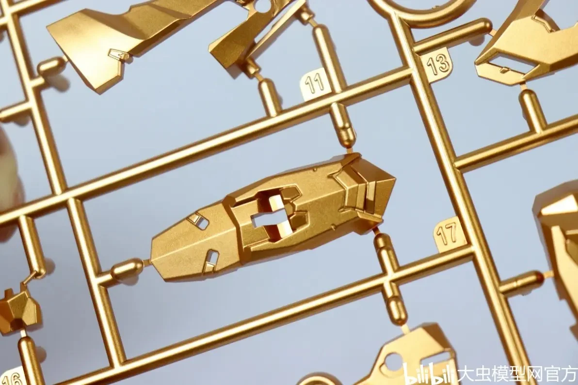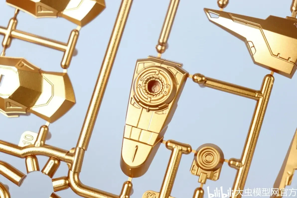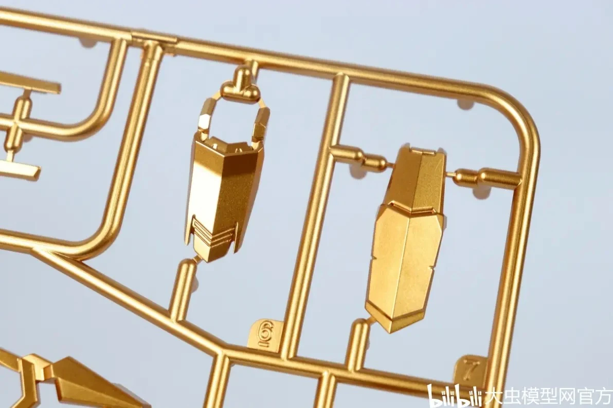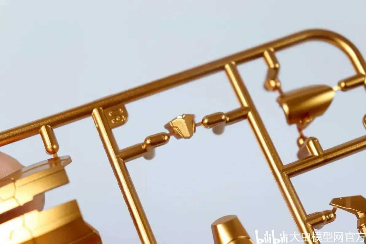 사전 도색 처리된 골드 컬러 런너 표면도 오돌도돌한 부분 없이 비교적 깔끔합니다. (리뷰용 샘플 기준으로는 별다른 도색 미스 없음) |