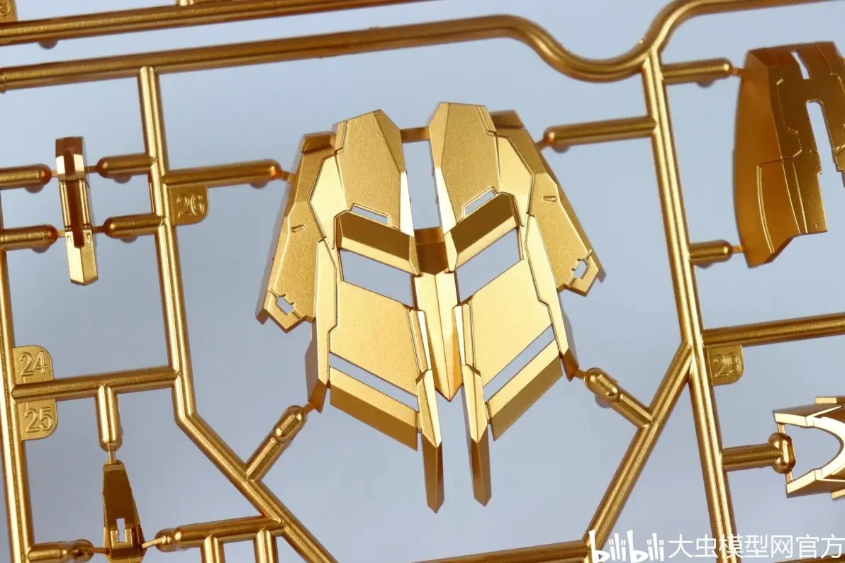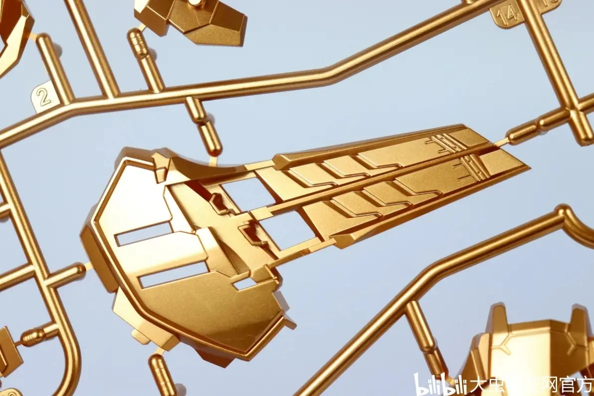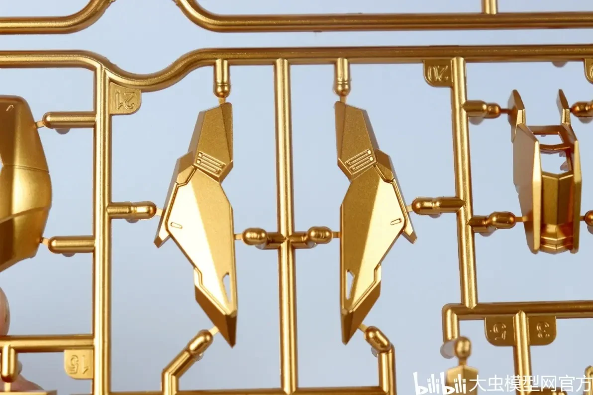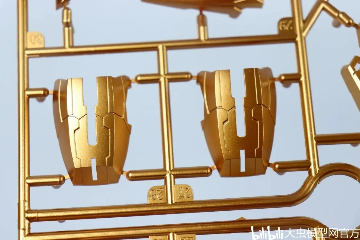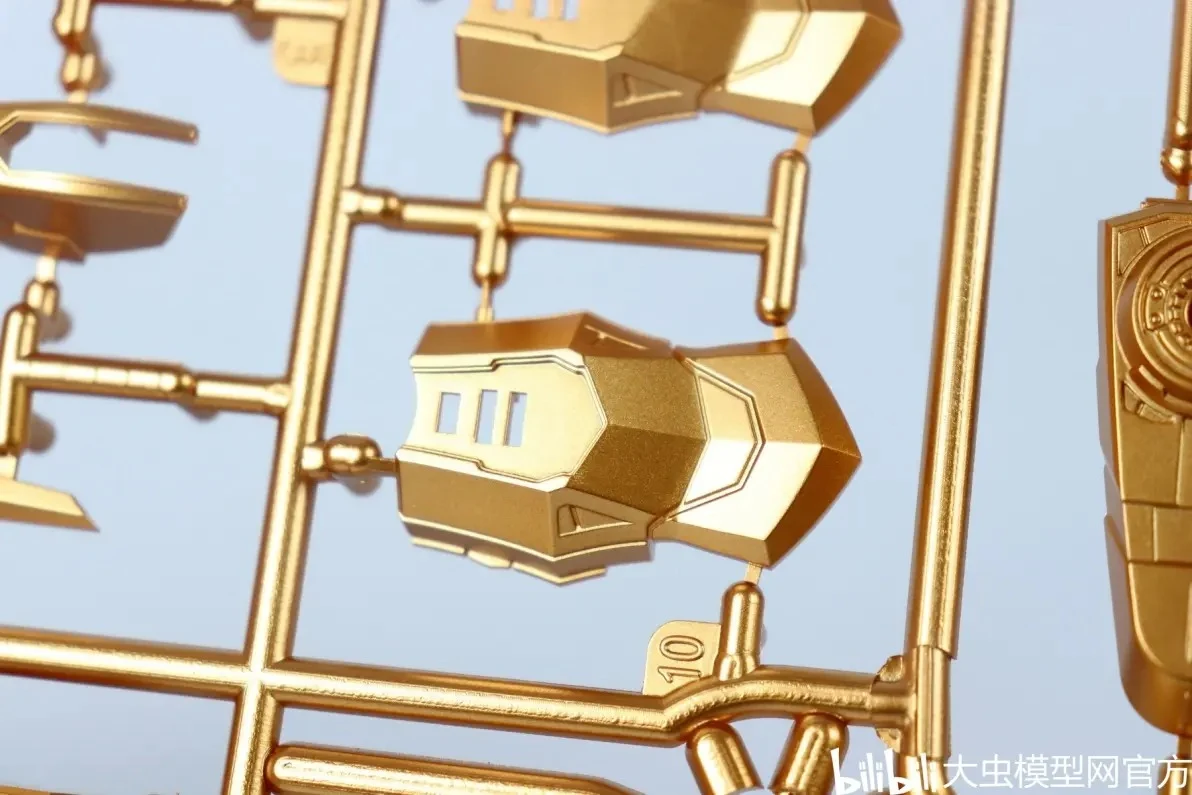 사전 도색 처리된 골드 컬러 런너 표면도 오돌도돌한 부분 없이 비교적 깔끔합니다. (리뷰용 샘플 기준으로는 별다른 도색 미스 없음) |