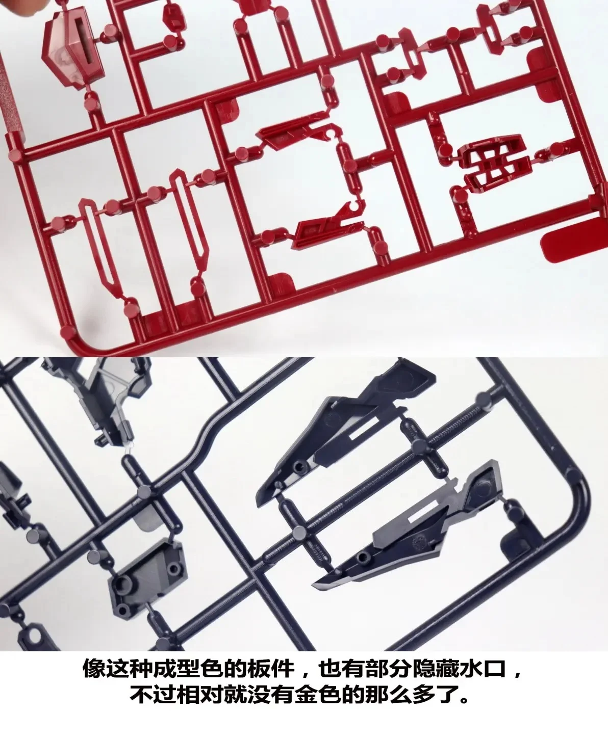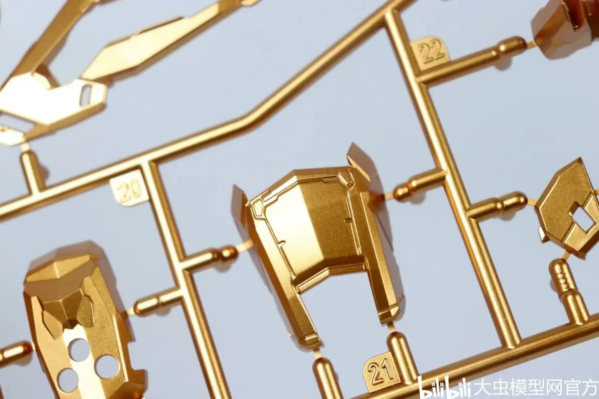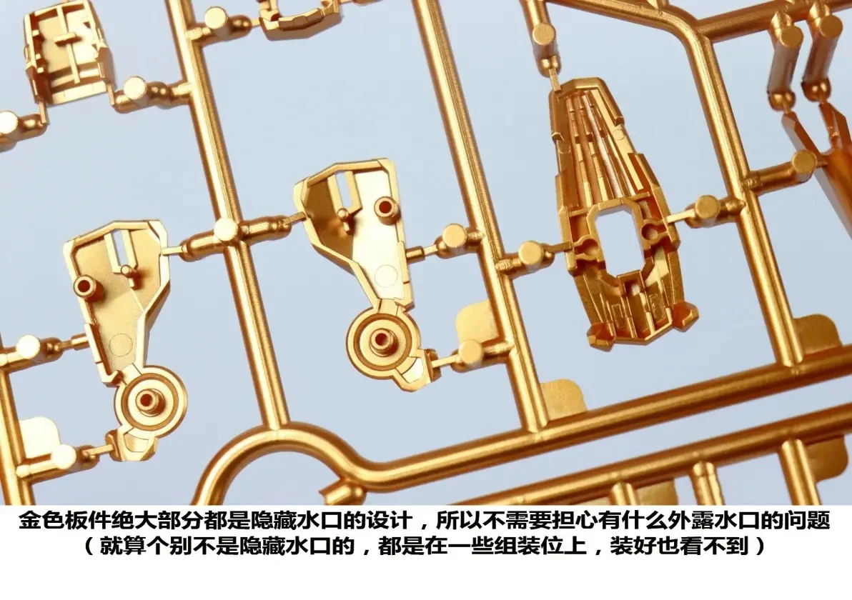 | 골드 컬러 런너는 대부분 언더게이트 적용되어 게이트 자국이 외부로 노출되지 않습니다 (일부 언더게이트가 아닌 부분은 조립 과정에서 가려져 안 보인다고 하네요) |