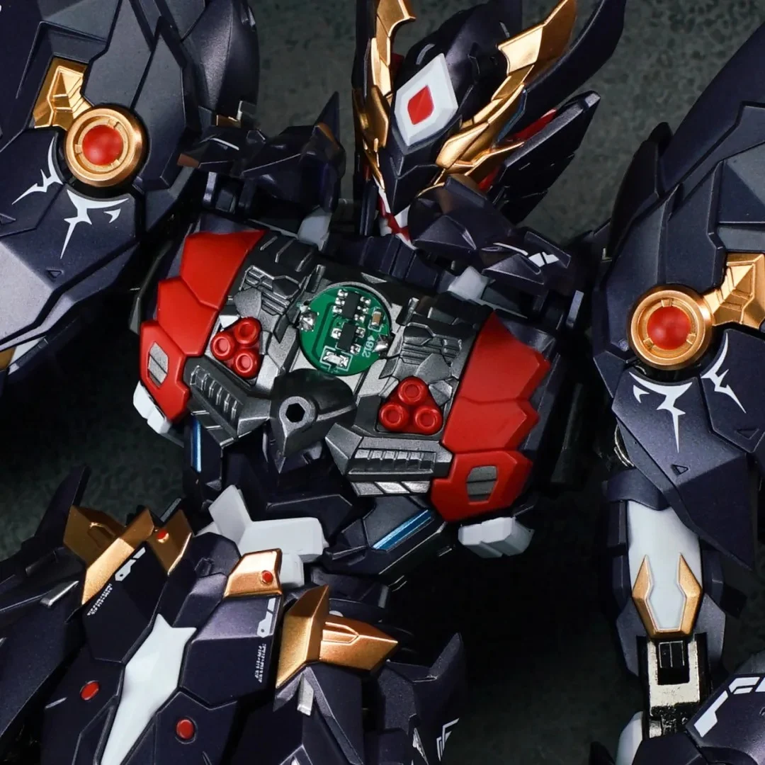 위 사진처럼 날개를 최대한 펼치면 연동 기믹을 통해 레이븐의 눈과 몸통 부위의 LED가 발광됩니다 |