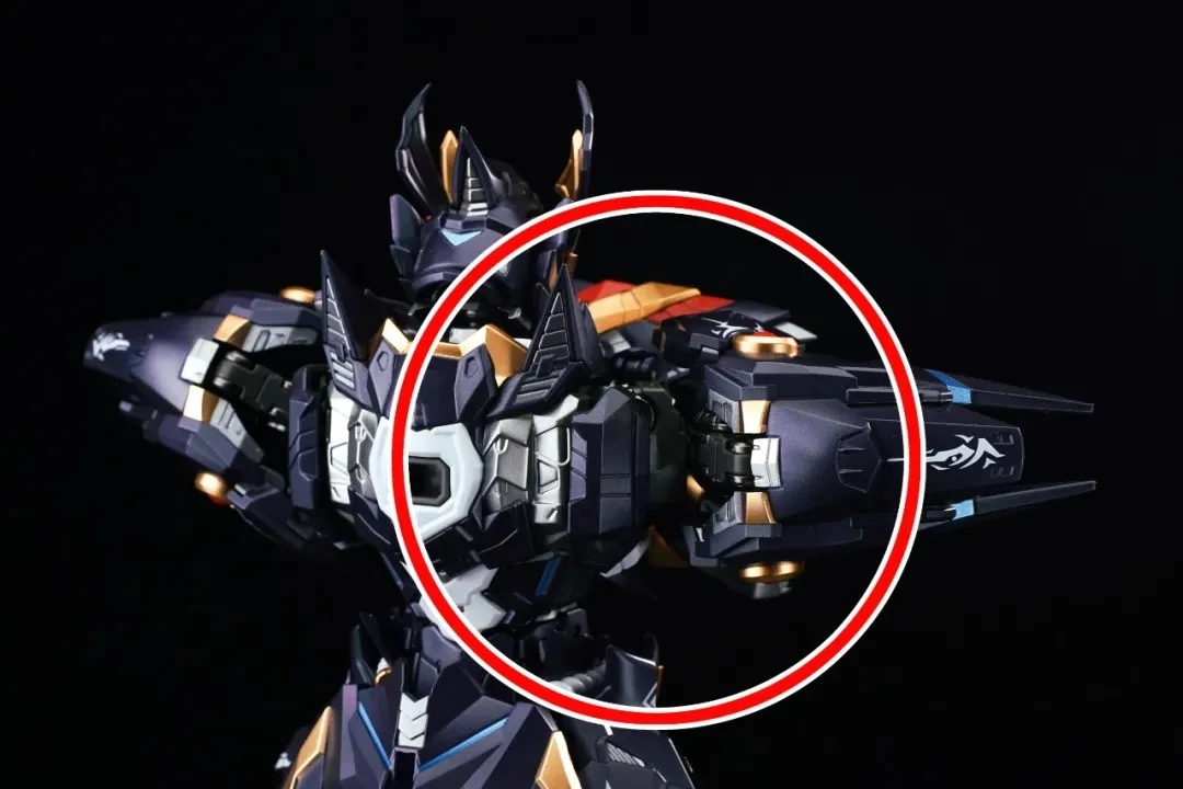 | 레이븐의 날개 파츠는 어깨 뒷쪽에 연결된 조인트 암을 통해 다양한 각도로 거치&포징이 가능합니다 |