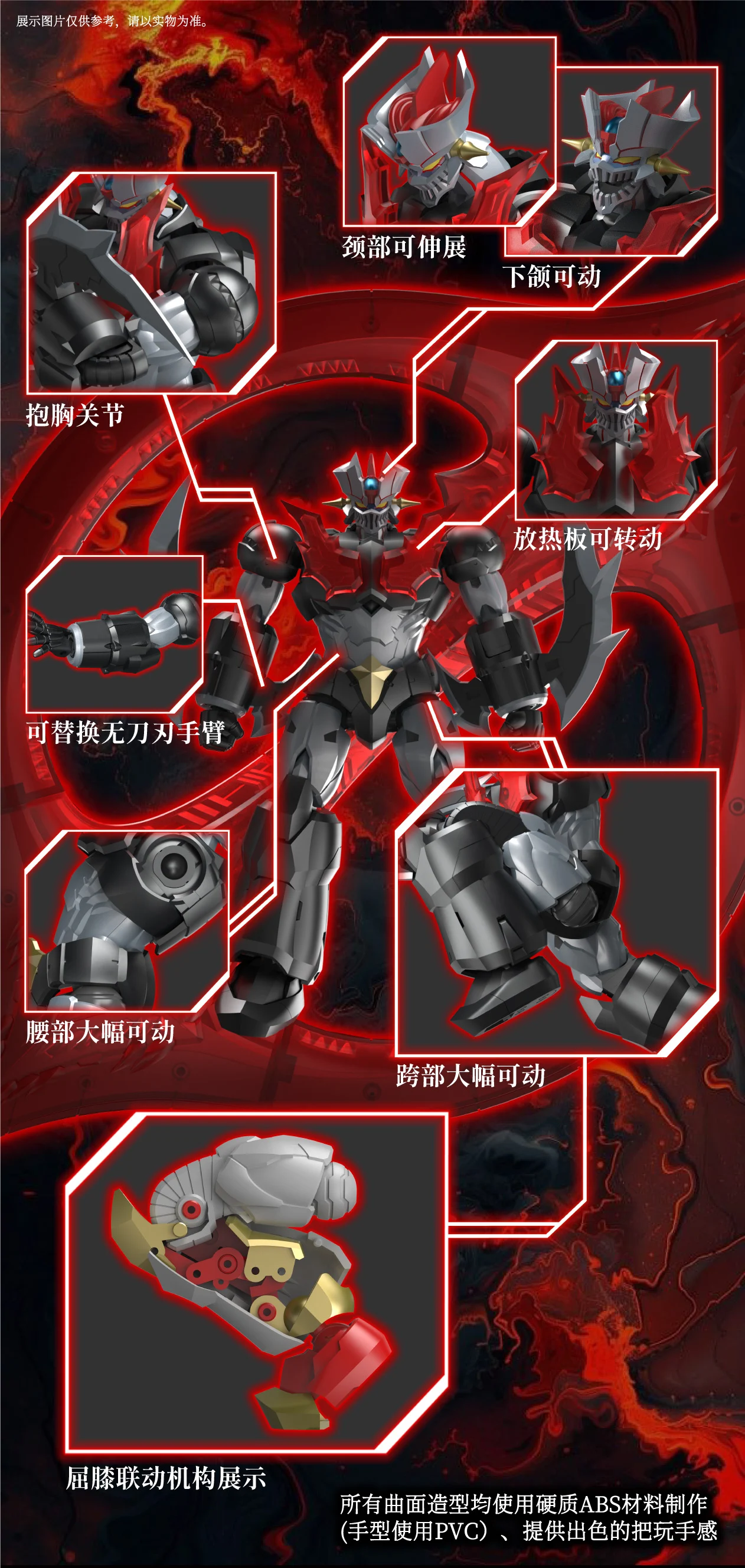 업체의 소개에 따르면 크기는 작지만 내부에 새로운 기믹/구조 설계를 적용해 원작 구현 및 가동성이 우수하다고 하며, 부분 부분 디테일은 정교하게 도색할 계획이라고 하는군요. 소재 쪽으로는 손 파츠가 PVC인 것을 제외하면 나머진 딱딱한 ABS와 POM 소재가 사용됐습니다.