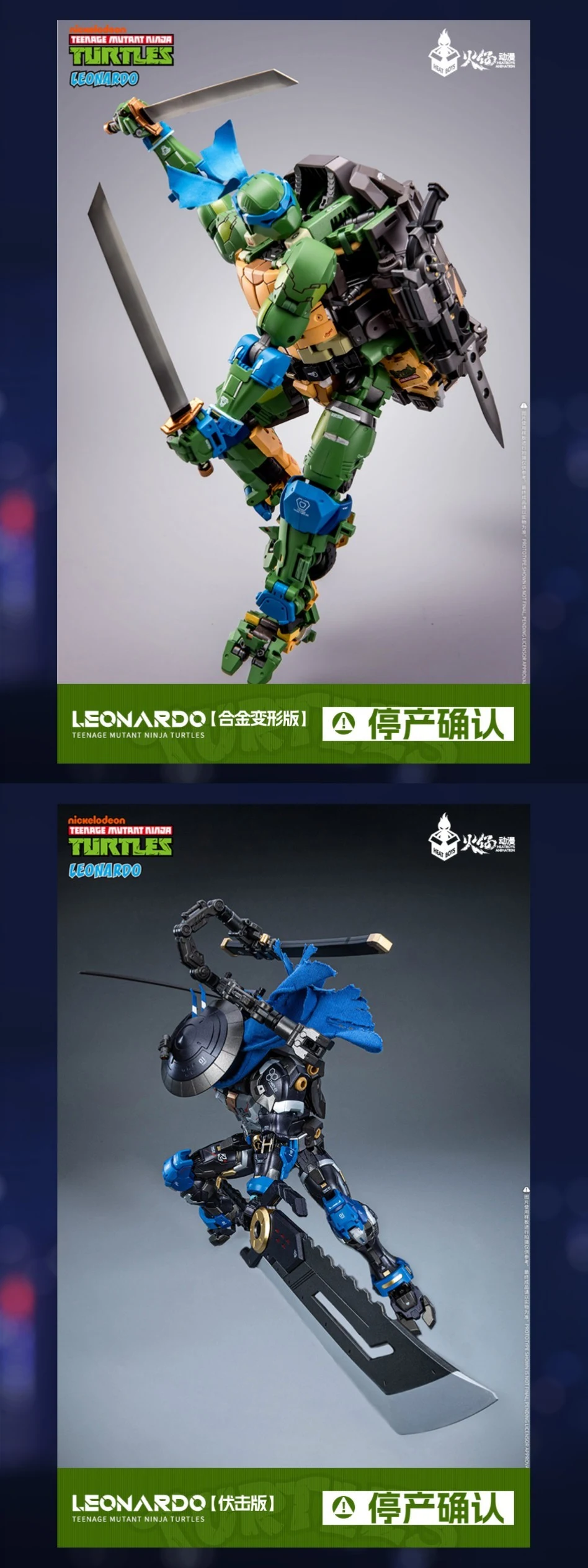 앞서 메카 히트(MECHA HEAT) 시리즈로 닌자거북이 메카를 제작/출시했던 히트보이즈에서 레오나르도, 라파엘, 미켈란젤로, 도나텔로, 레오나르도 40주년 기념판, 그리고 메카 트랜(MECHA TRAN) 시리즈의 닌자거북이 레오나르도의 단종을 공지했습니다. 이에 따라 7월 3일부터 위 제품들의 생산이 중단된다고 하는군요.