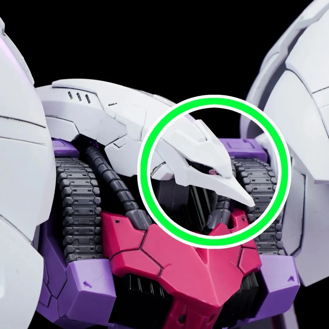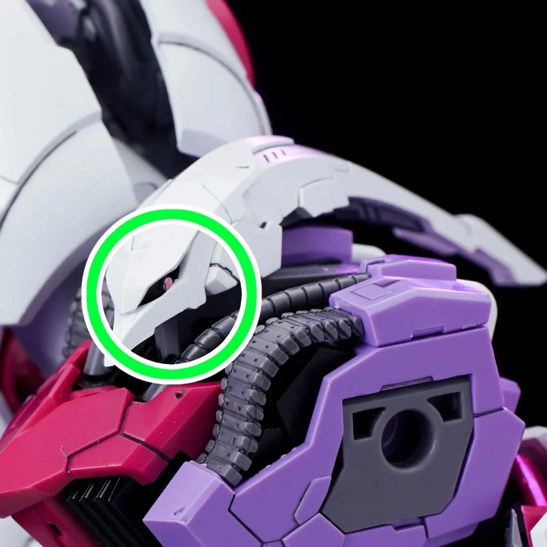 | 어깨 장갑 내부에 패널라인 및 디테일이 풍성합니다. 어깨 외장과 종아리 전면부에는 약 1mm 정도의 틈새가 있습니다. 이건 조립이 안 된 게 아니라 원래 그런 조형이라고 하는군요 |
