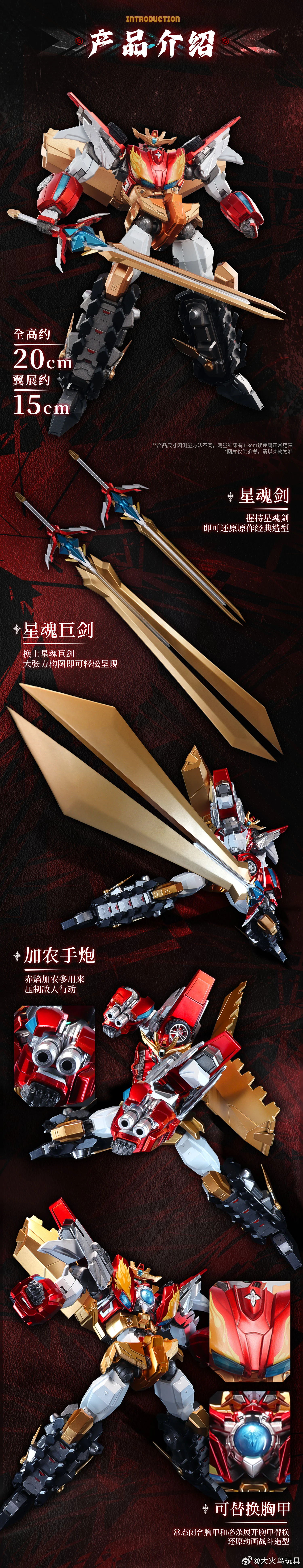 중국 모형업체 빅파이어버드가 중국 메카 애니메이션 ‘신룡구조대-원기성혼’ 시리즈 속 메카 캐릭터인 열염성신(플레임 스타 가디언) 합금완성품의 출시 정보를 공개했습니다.