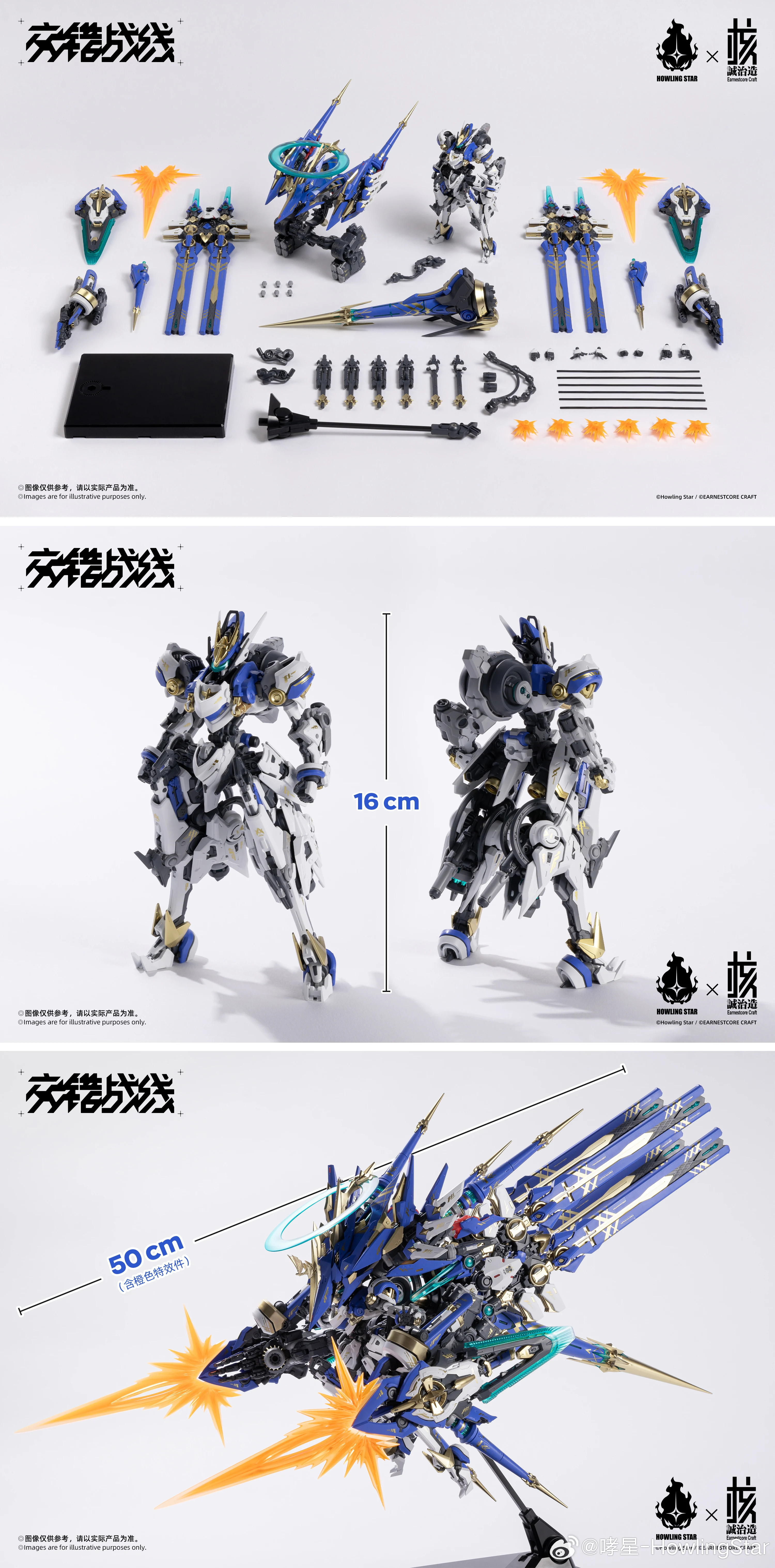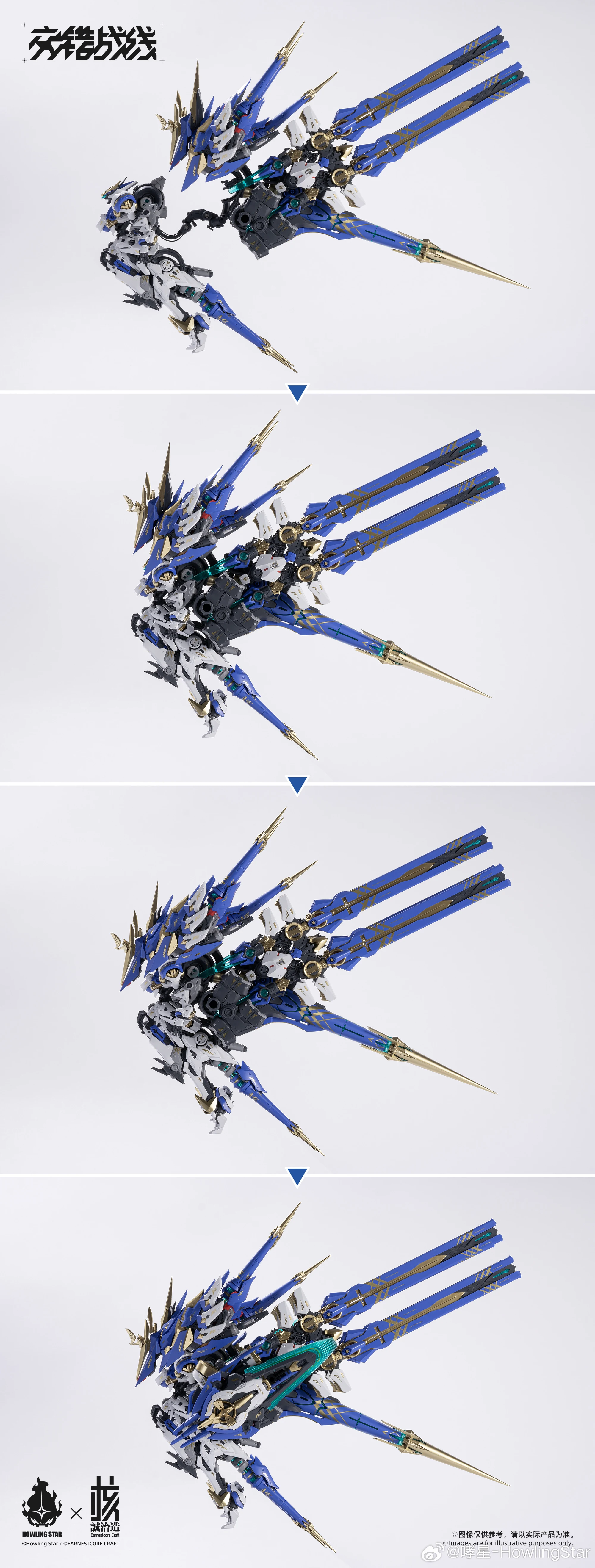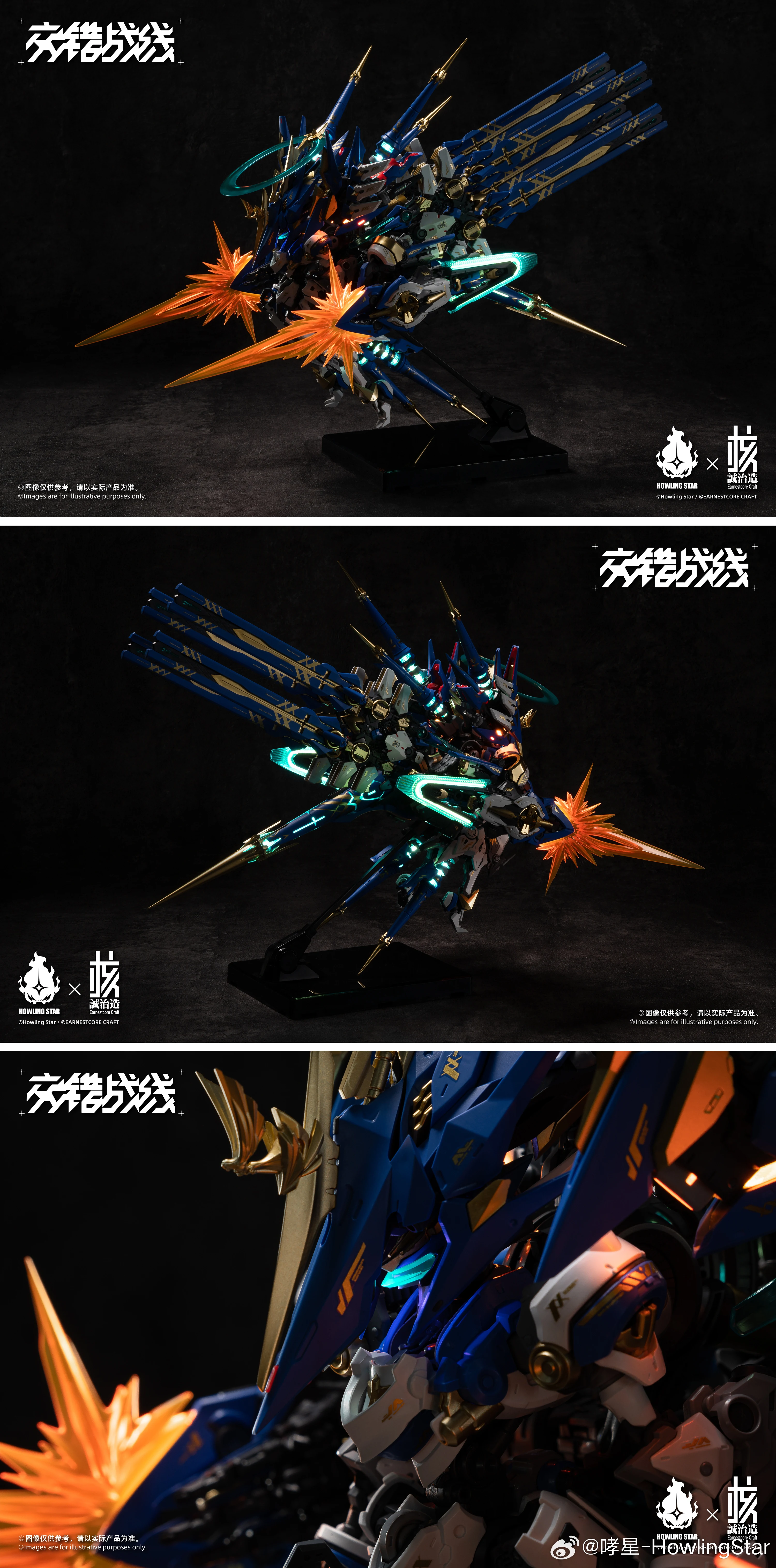 어제 PV 영상을 공유드렸는데, 바로 제품 상세 정보 및 공식 사진이 공개됐네요 ㅎㅎ 중국 모바일 게임 교착전선에 등장하는 메카를 프라모델로 제작한 만큼 완전한 오리지널 제품이며, 여기에 이펙트 파츠 포함 길이 50cm, 베이스 포함 높이 35cm라는 어마어마한 볼륨감,추가로 LED 유닛 11개까지 갖췄음에도 가격이 299위안(출시 후 339위안)으로 책정되면서 넘치는 가성비를 보여주는군요 ㄷㄷ