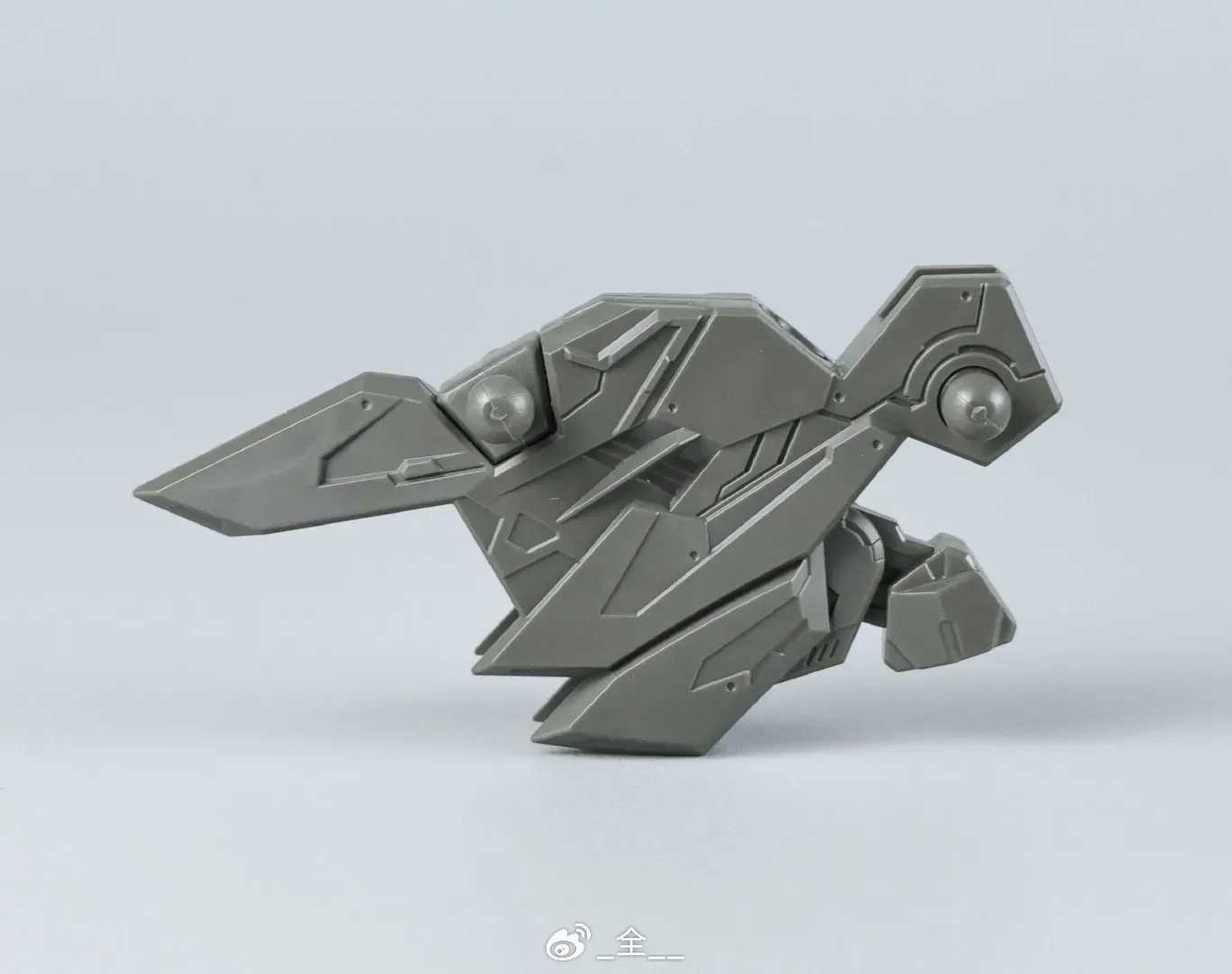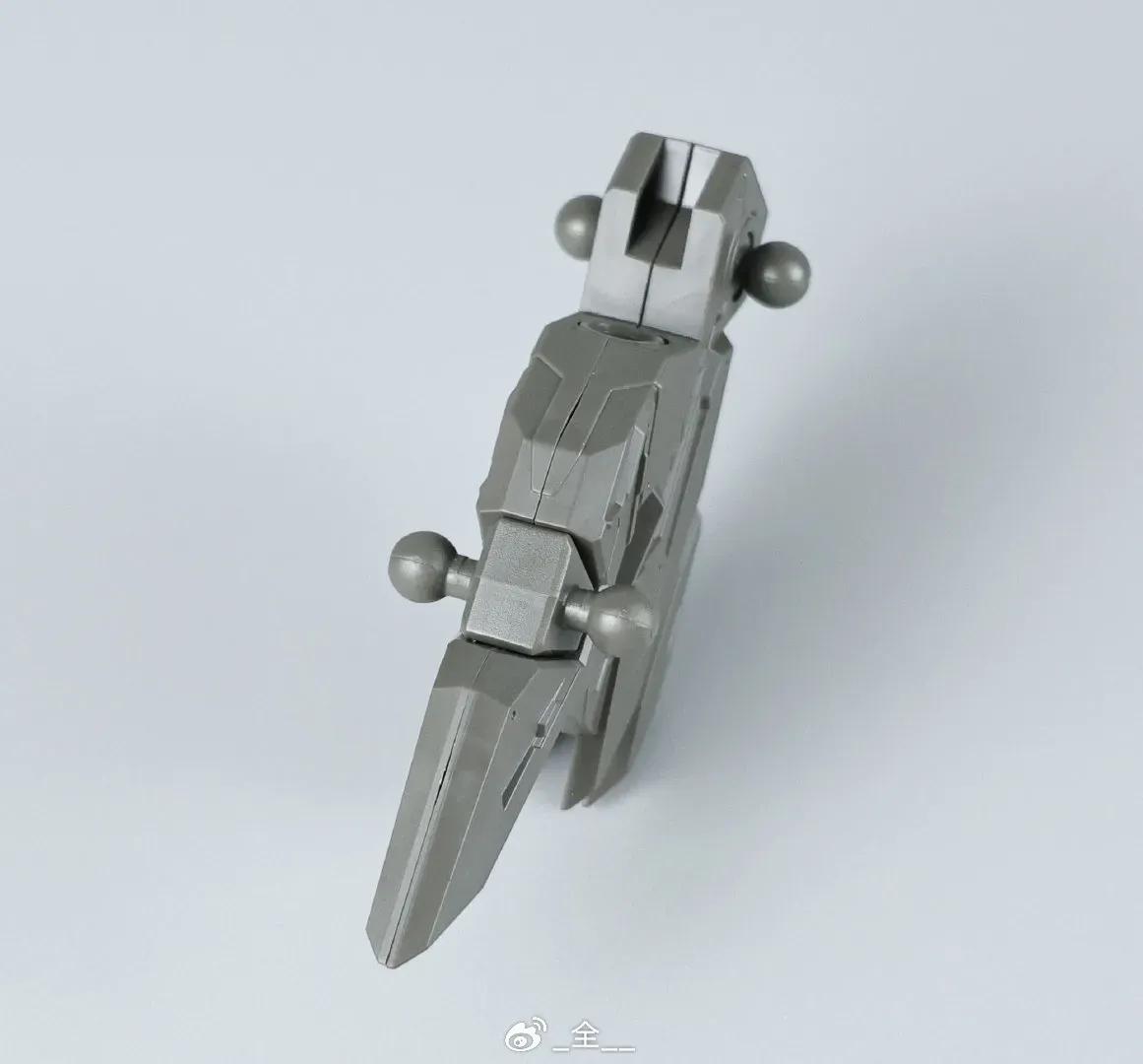 | 비행 형태 변형을 위해선 소체도 조정이 필요합니다. 우선 머리와 허리를 180도로 돌리고, 가슴 부위에 비행 형태 후 액션베이스에 꽂을 수 있도록 커다란 조인트 파츠를 장착해줍니다. |
