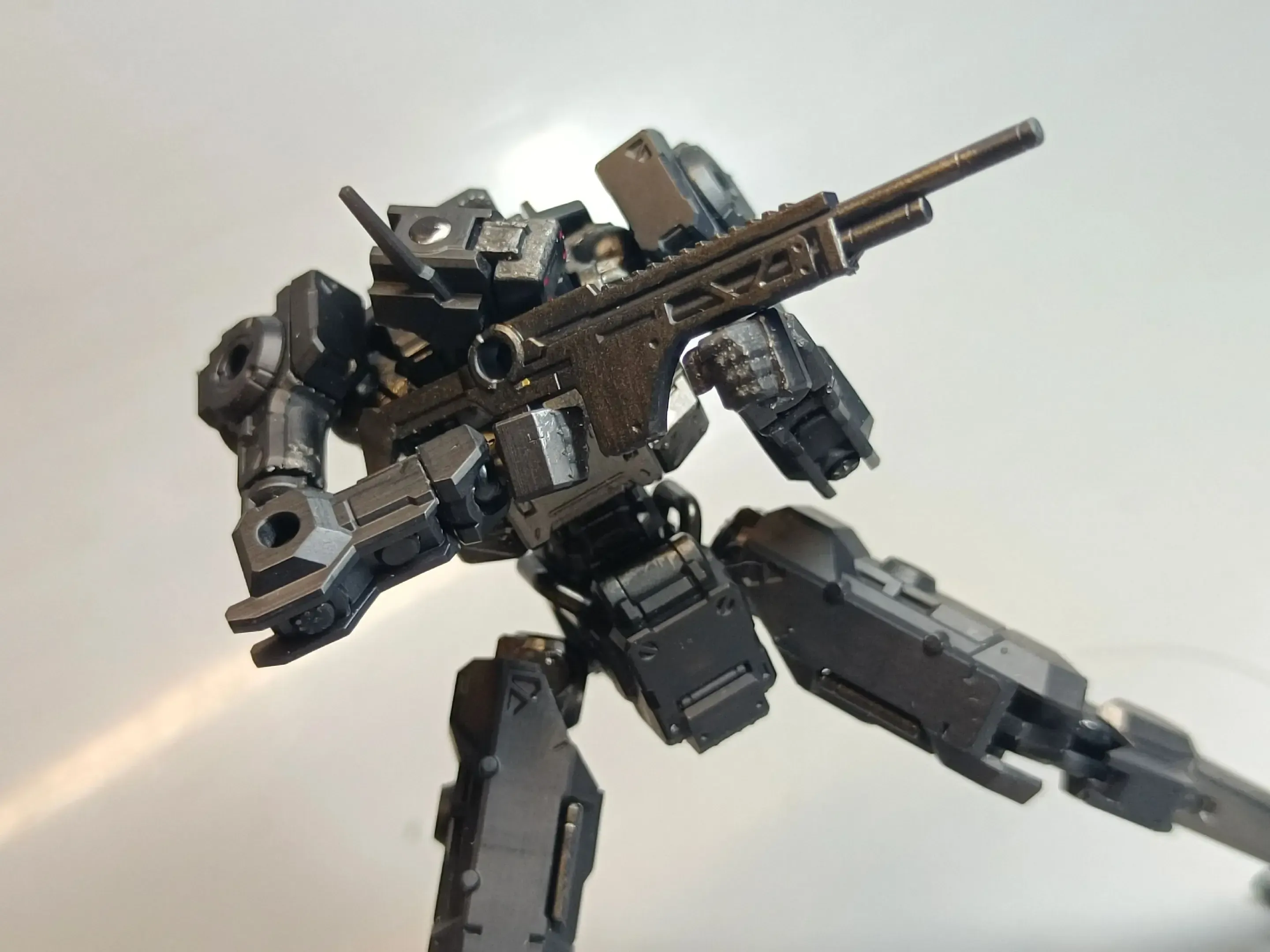 펜리르는 ‘다용도 리모트 컨트롤 휴머노이드 컴뱃 유닛’이라는 설정이며, 늘씬한 조형에 리얼 메카스러운 디테일을 갖췄습니다. 조형 잘 뽑았네요. 일전에 공개된 정보에 따르면, 1/12과 1/18 이렇게 2가지 스케일로 제작된다고 했는데, 이번에 공개된 녀석은...사진의 손바닥 크기에 비춰봤을 때 크기는 10cm 정도? 어쩌면 그보다 더 작아보이기도 합니다. 작은만큼 파츠 분할이나 구조가 복잡하지 않아서 조립 자체는 금방일 듯 하군요.