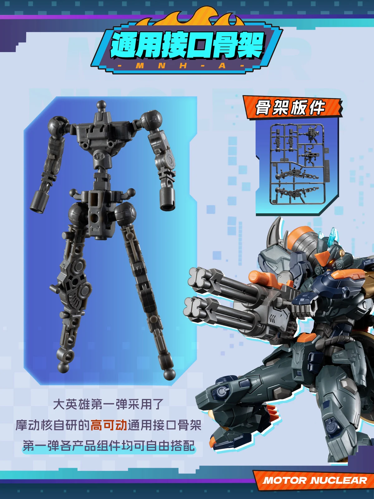 - 모터뉴클리어에서 자체 개발한 고가동성 호환 내부 프레임