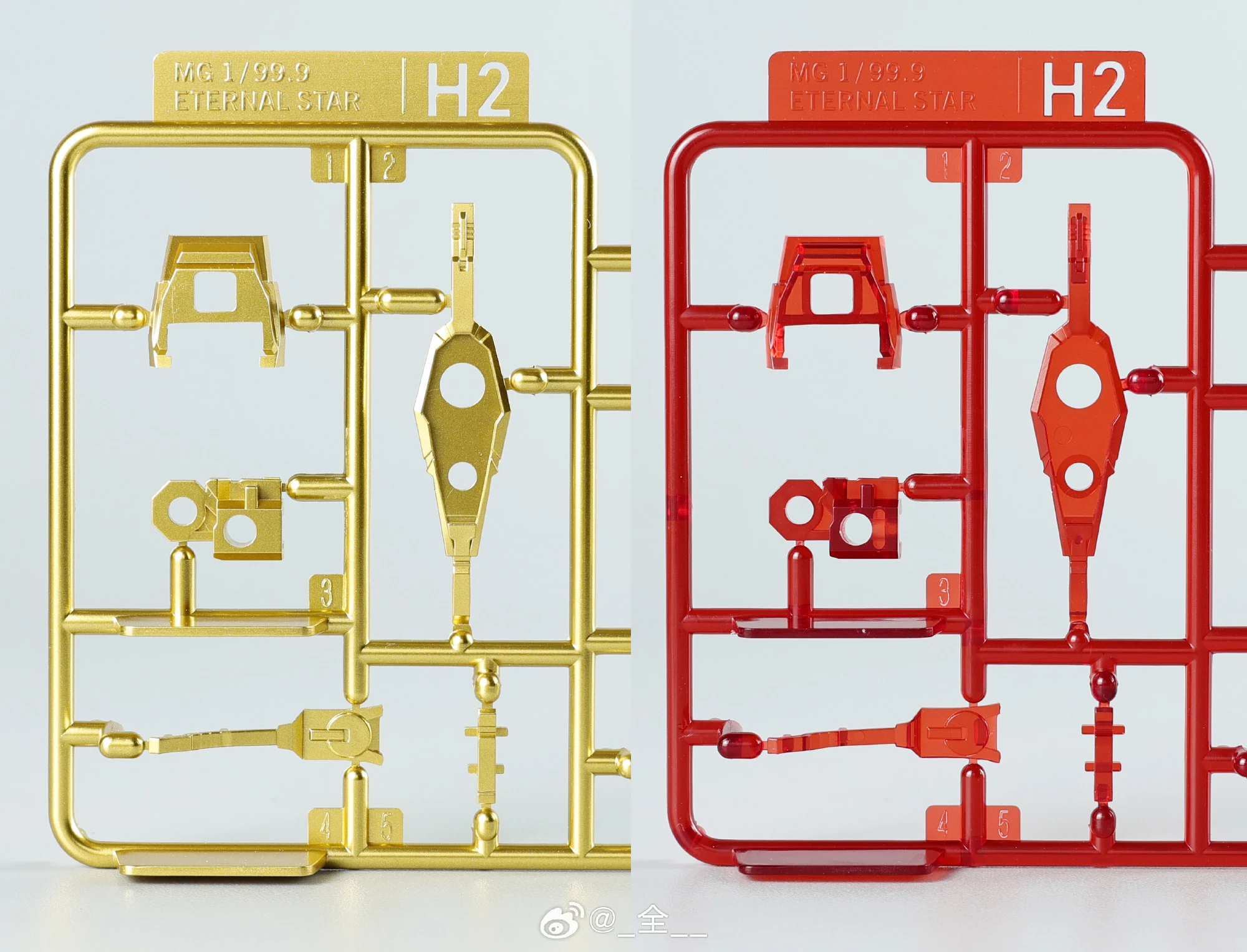2. 뿔과 발광 라인 파츠는 골드와 클리어 레드 컬러 2종이 제공됩니다.