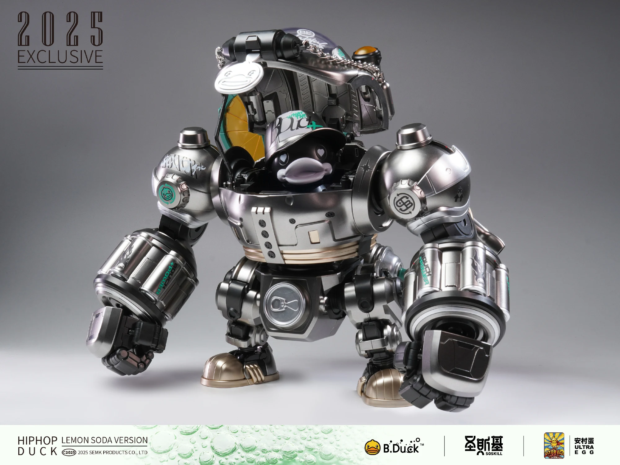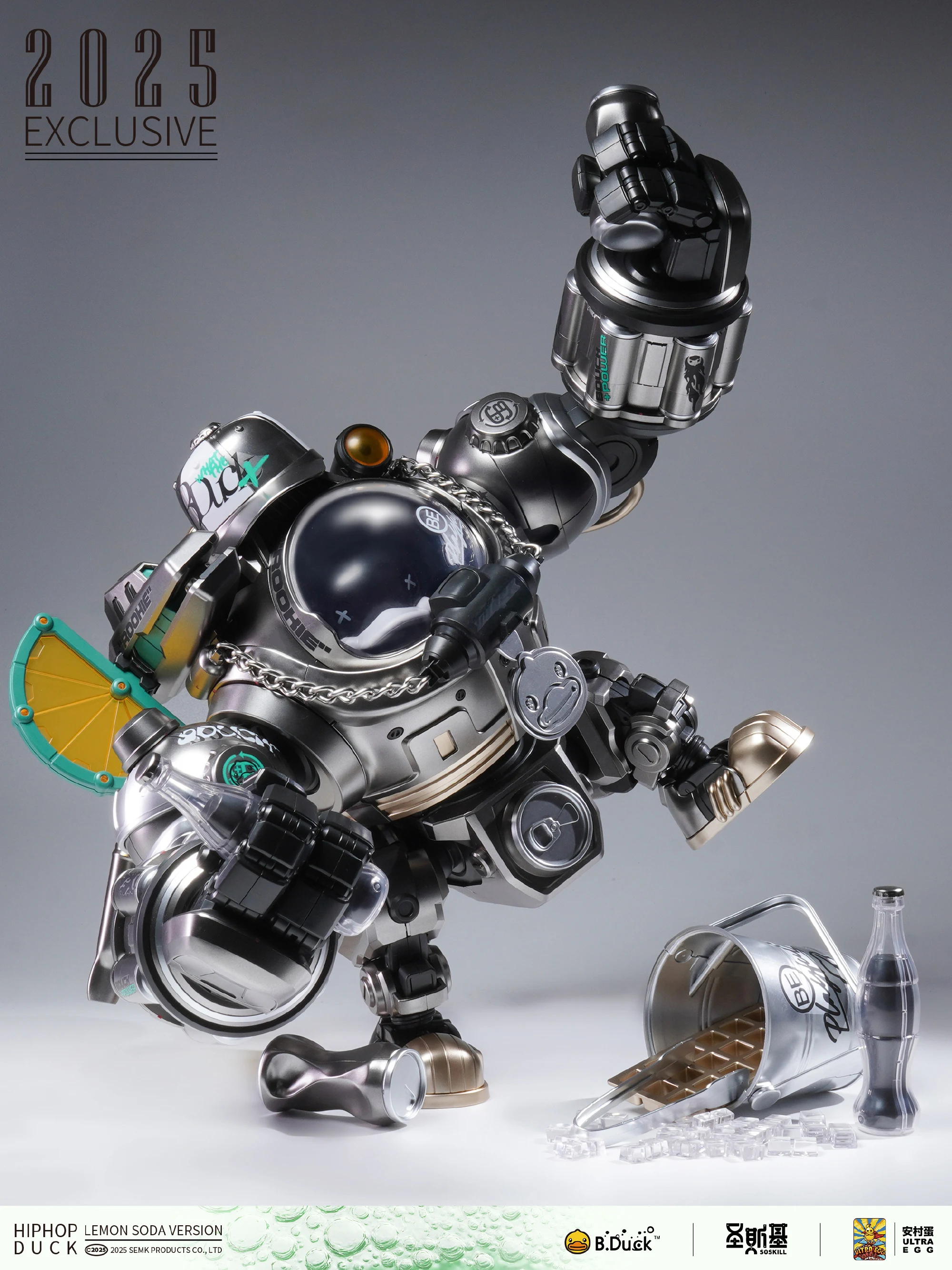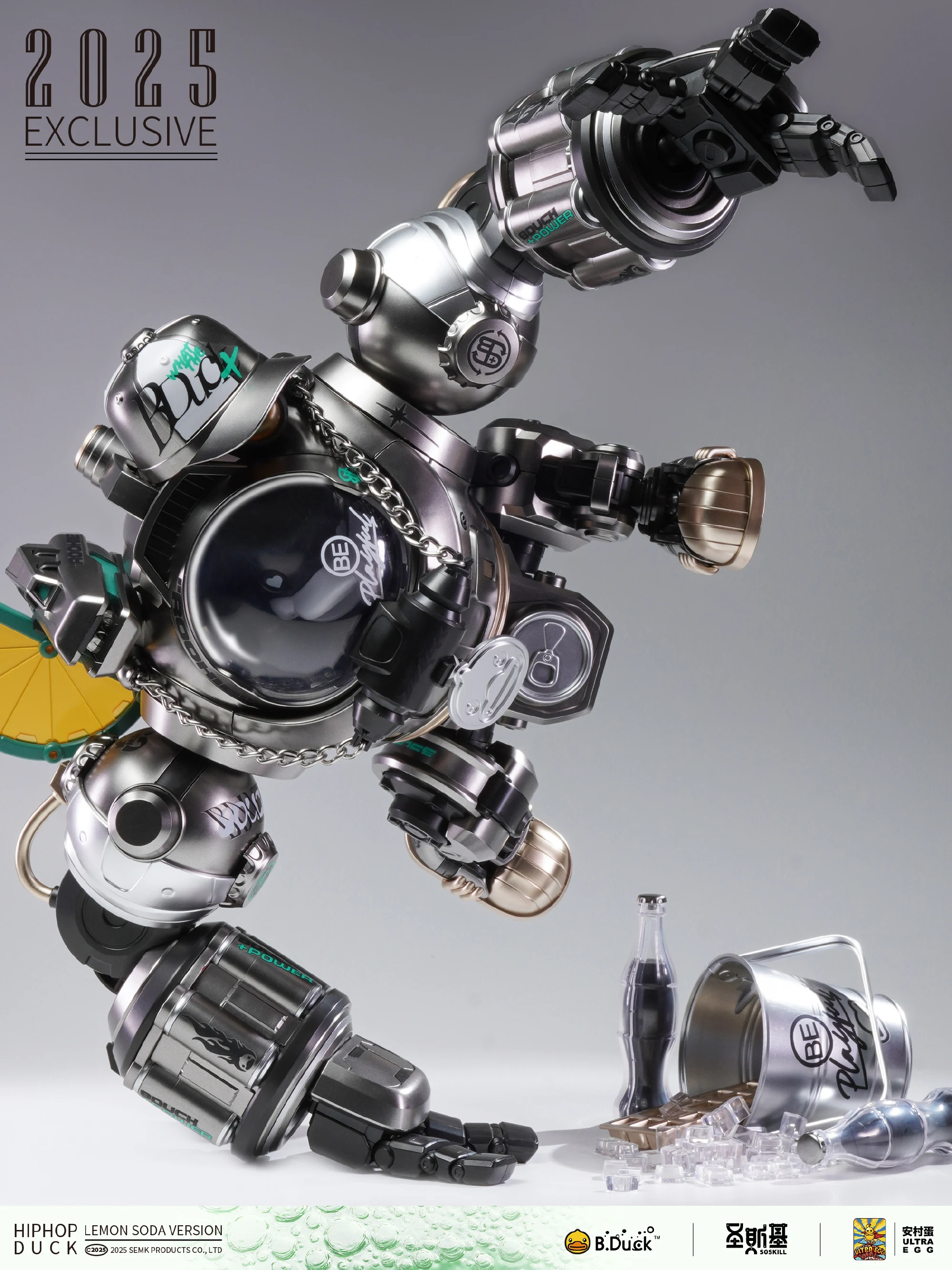 기존의 힙합 덕과 비교해...전신 외장에 메탈실버 컬러로 정밀 도색되어 기계적인 메탈 질감을 살렸다고 하며 일부 외장, 라임소다 캔 조형, 스텐리스 빨대 등 주요 부위에 레몬소다 요소, 로고, 컬러가 적용된 모습입니다. 가격은 268위안입니다.