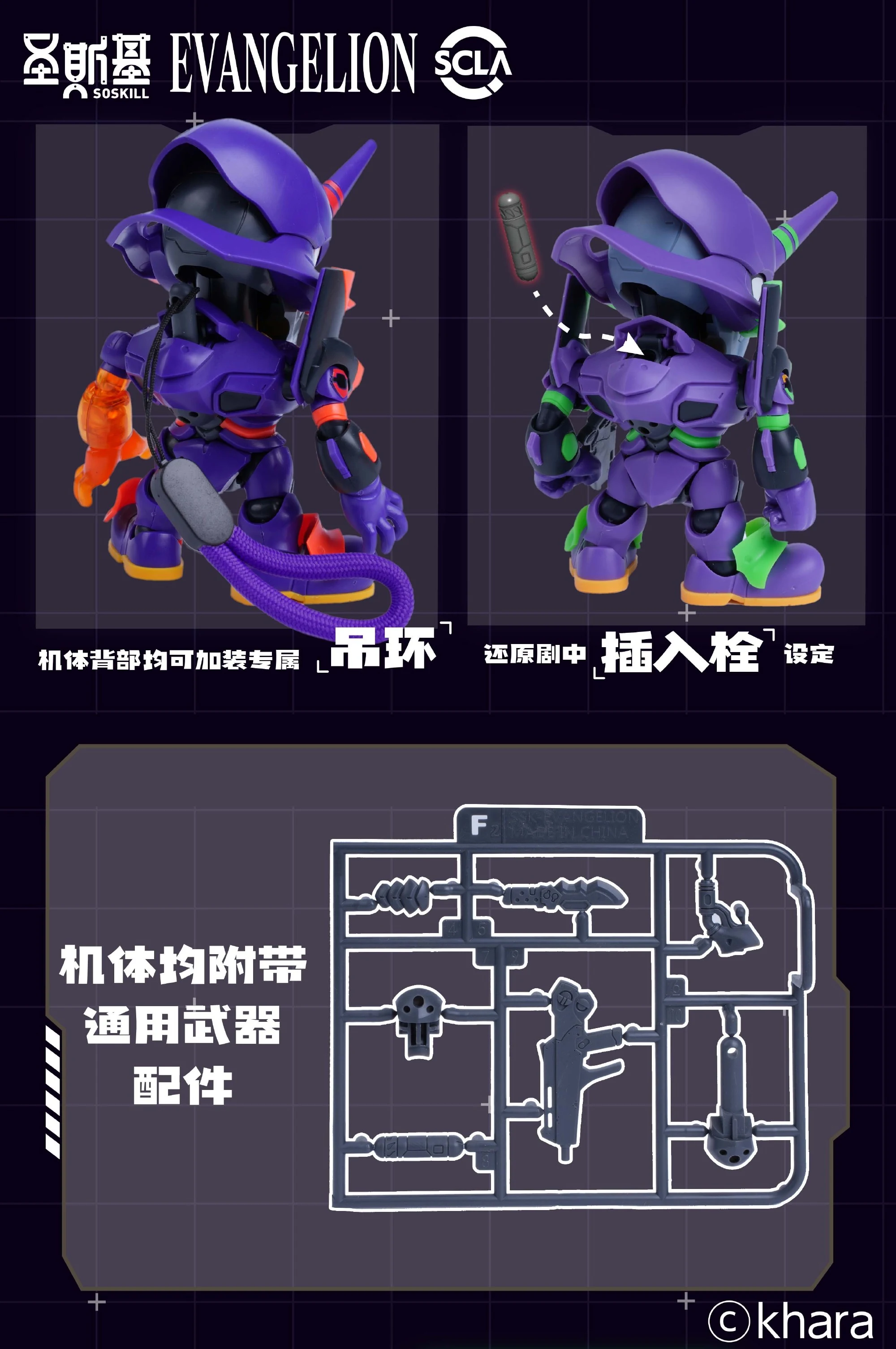 | 공통구성품 - 제품 등 부위에 링 고리를 연결할 수 있어 가방 등에 달아줄 수 있음 - 등 부위 외장 파츠가 오픈되어 엔트리 플러그 설정 구현 가능 - 전용 무기 외에 기본 무장 파츠 런너 동봉 |