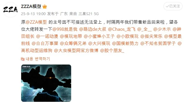ZZA모형에서 2년만에 신제품으로 거스(GUS)라는 제품의 실루엣 이미지를 공개했습니다. 검은 실루엣의 머리 부분에 눈으로 보이는 하나의 불빛이 보이고, 이미지에 표시된 제품명 부분의 로봇 얼굴 조형을 보면...뭔가 짐 스타일이 아닐까 예상됩니다. 모델 넘버는 GZSS-OX로 표기되어 있네요.