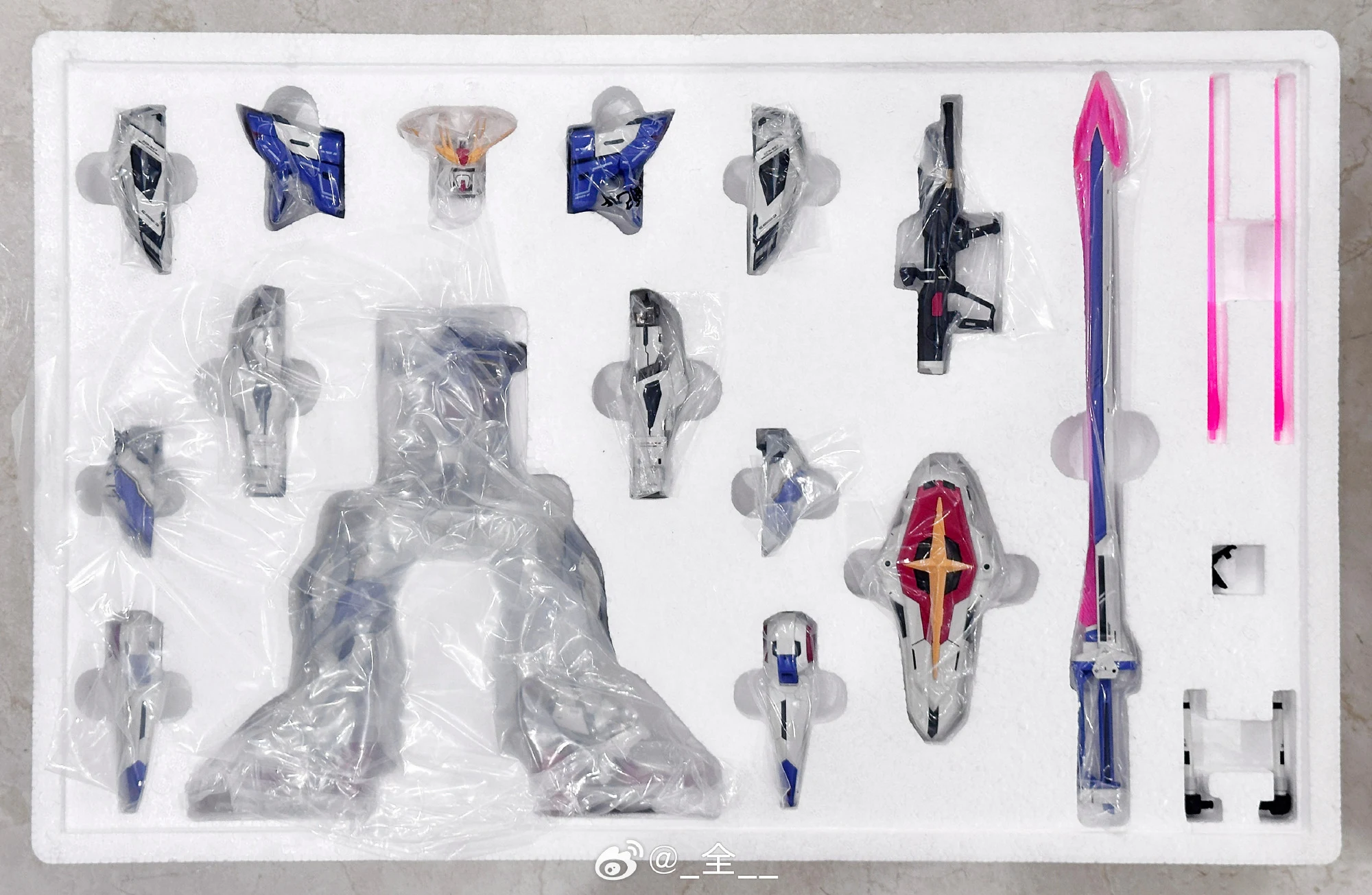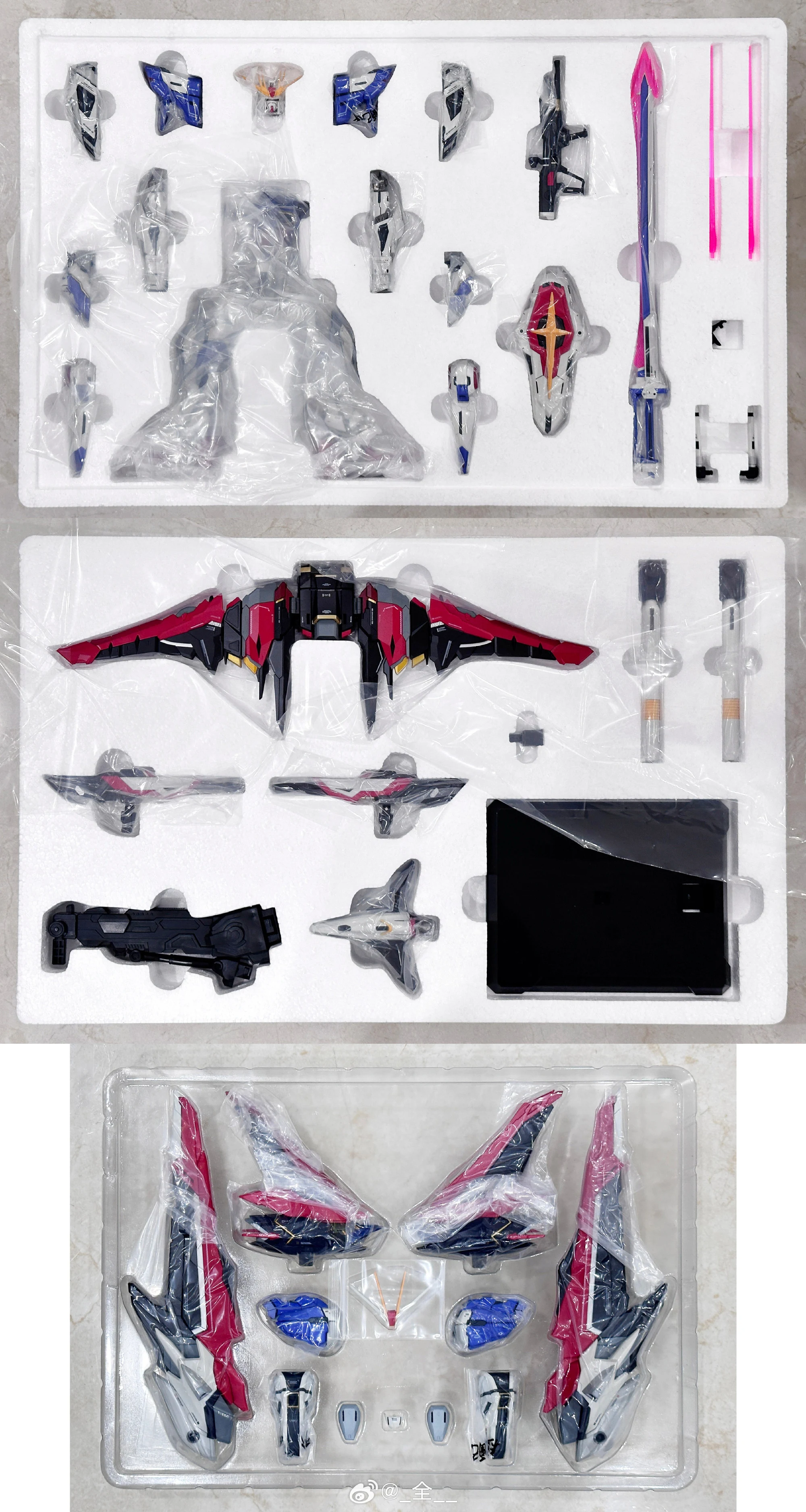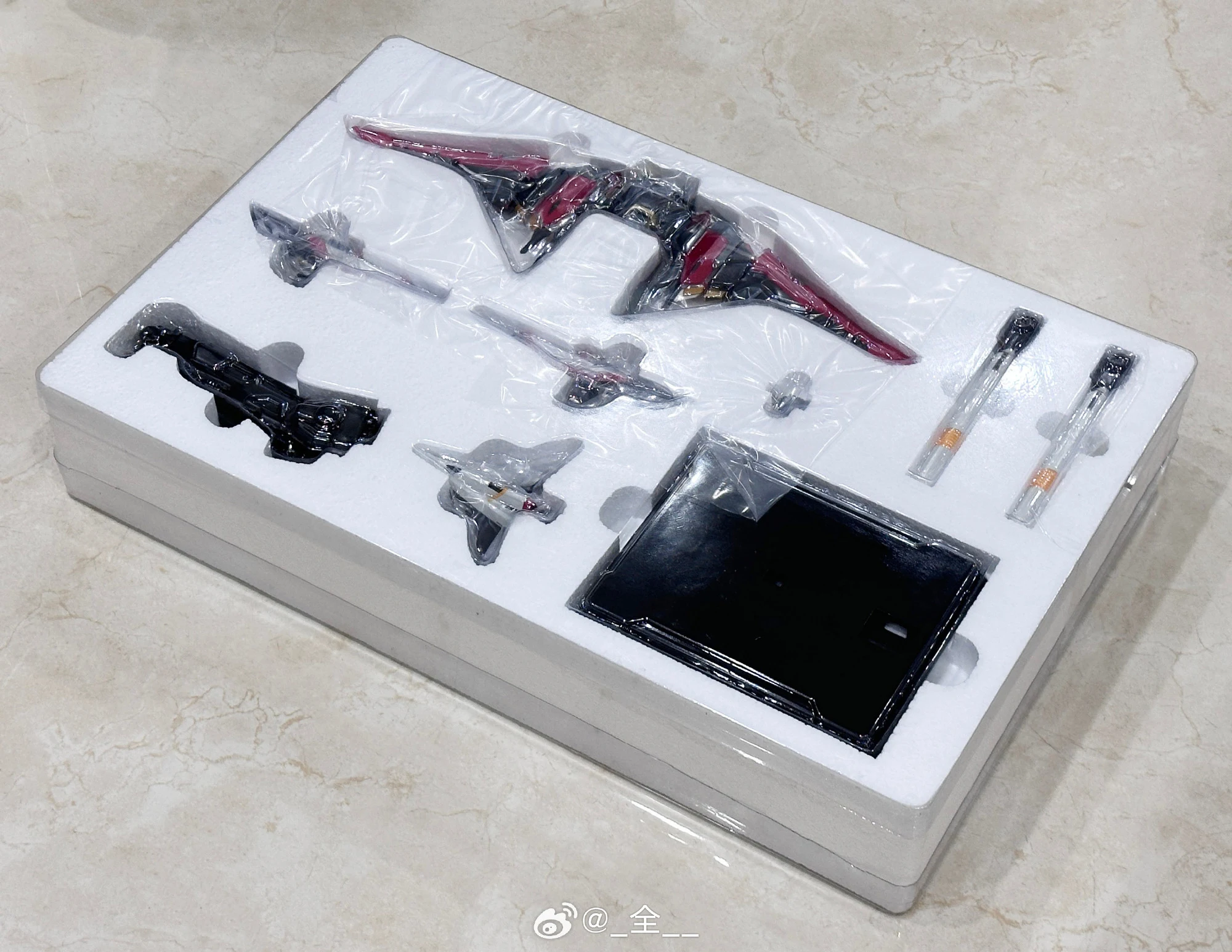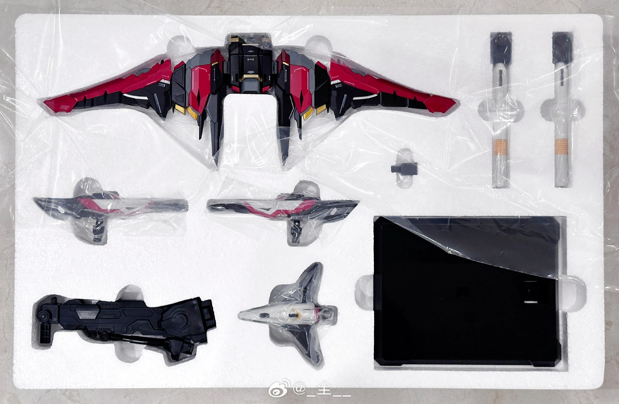 - 소체와 옵션팩, 베이스가 동봉되어 있으며 내부는 합금프레임, 외부 장갑은 도색 처리, 먹선과 프린팅이 적용되어 있습니다.