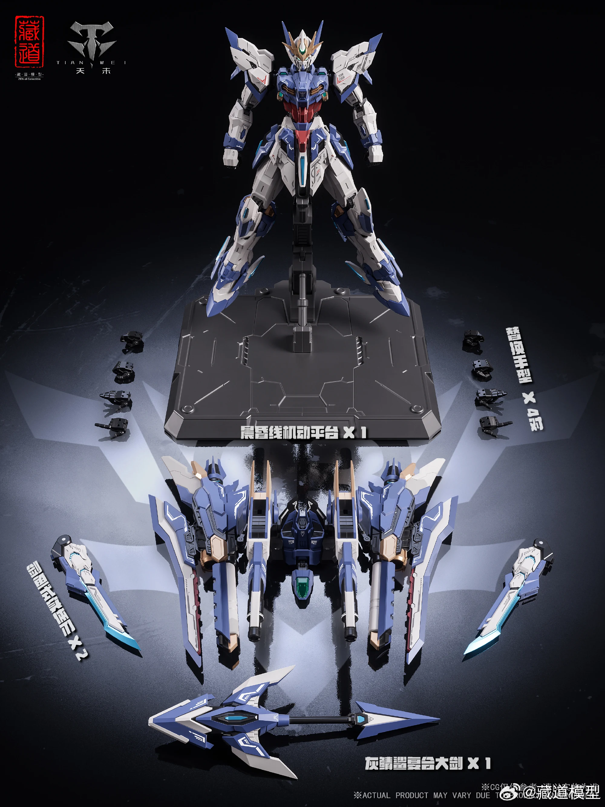 물론, 현재는 모쇼에서도 탁월 클래스를 300위안 초반대로 내면서 경쟁상대가 생겼지만…예전에는 압도적인 가성비였던 라인업이라고 할 수 있습니다 ㅎㅎ 본론으로 넘어가죠. 이번에 예고된 천진은 천미와 천벌에 이은 3번째 제품이구요. 우수한 가동성과 디테일한 도색 처리, 화이트와 블루 컬러 조합, 황새치와 청상아리의 형상을 따온 원형 디자인 등이 주요 특징입니다.
